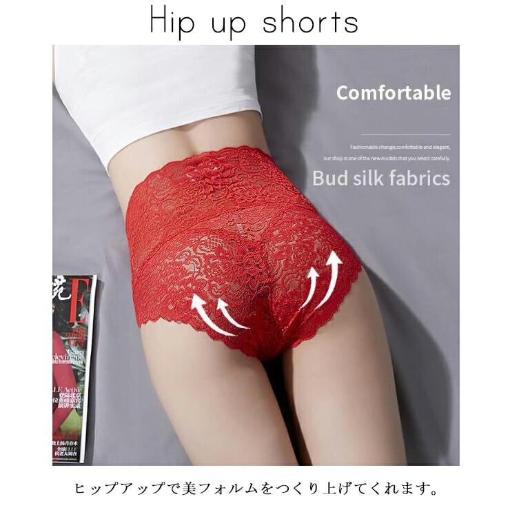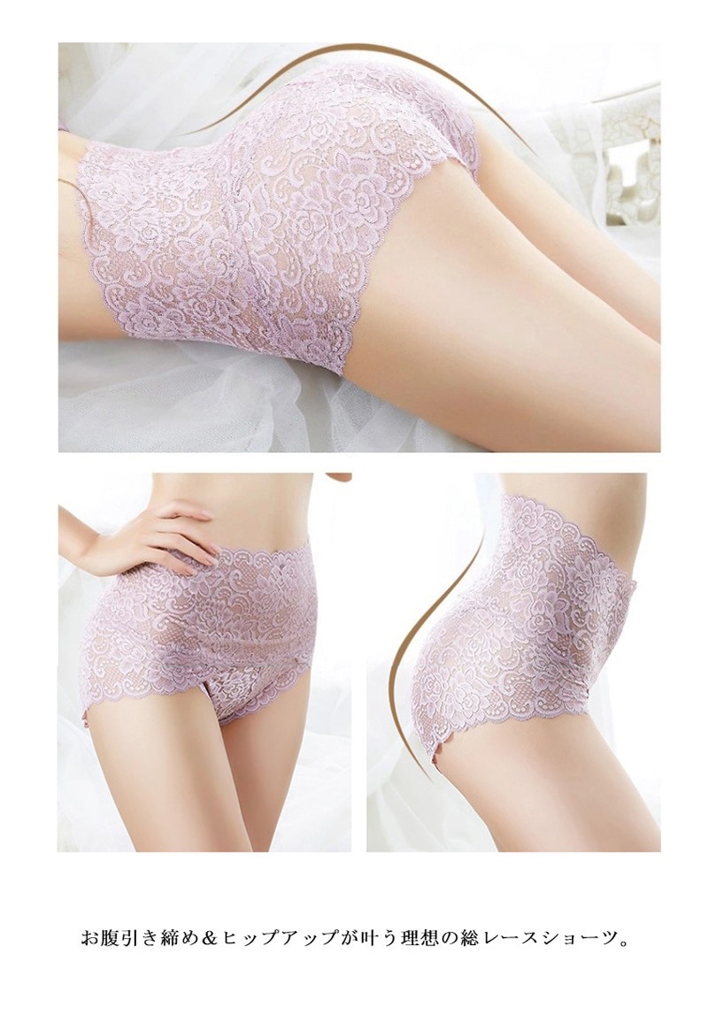 8枚組 ショーツ 総レース ハイウエスト 国内発送 レディース 全8色 M L LL 深め インナー 下着 薄い 通気性 美尻 セクシー 綿クロッチ 花柄レース 女性用 30代 40代