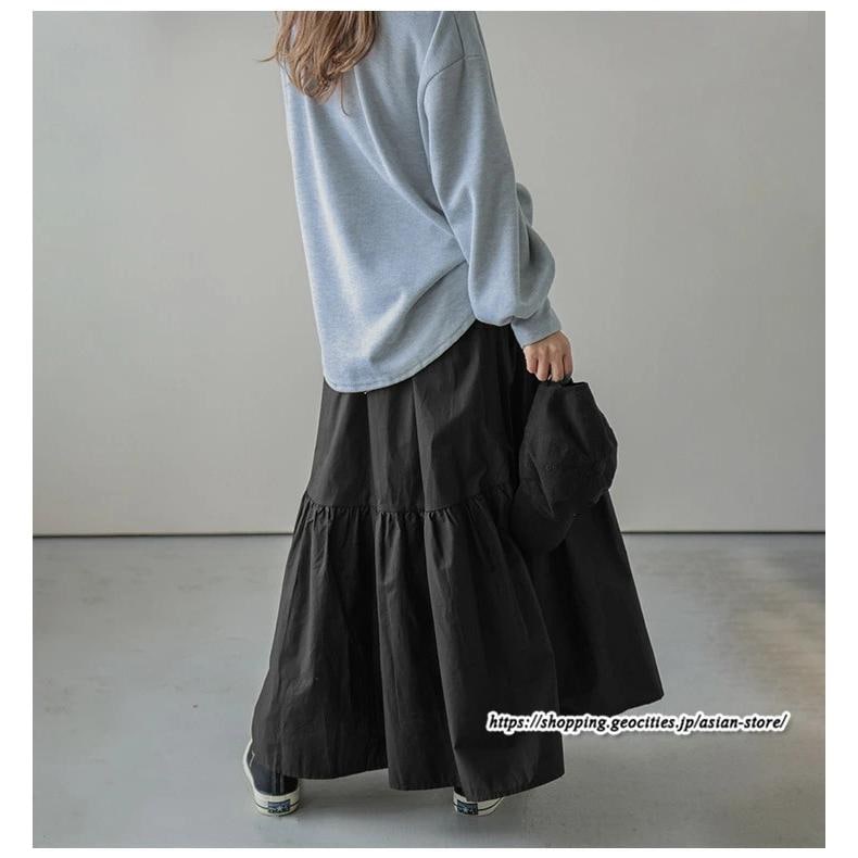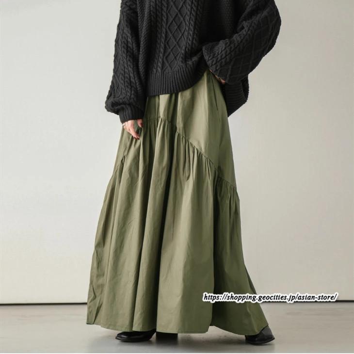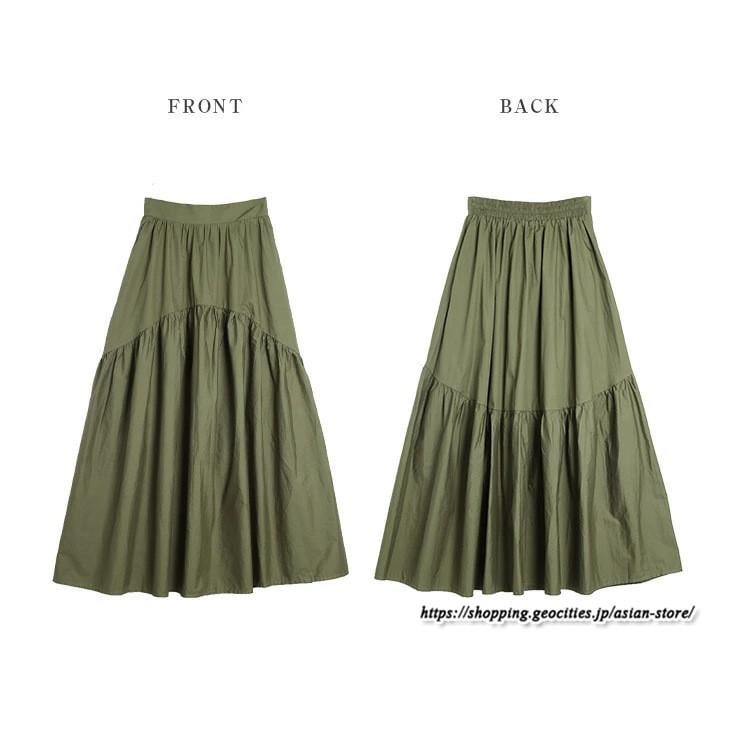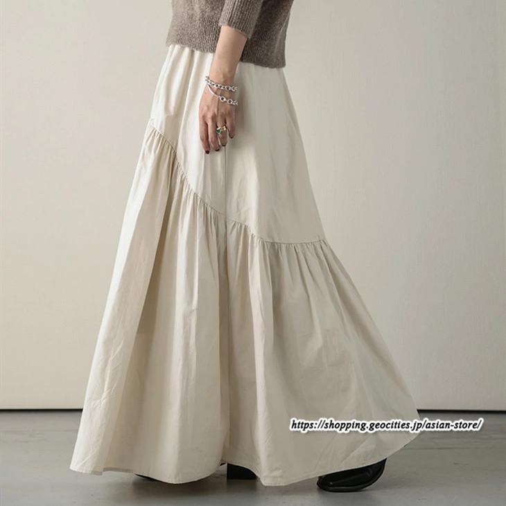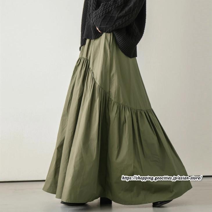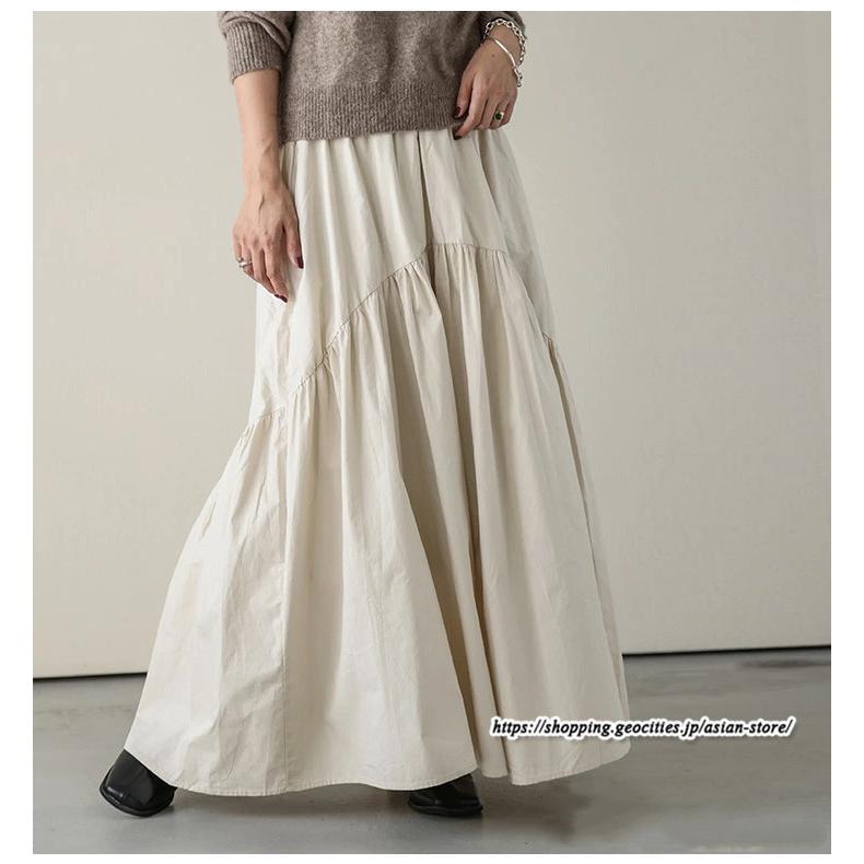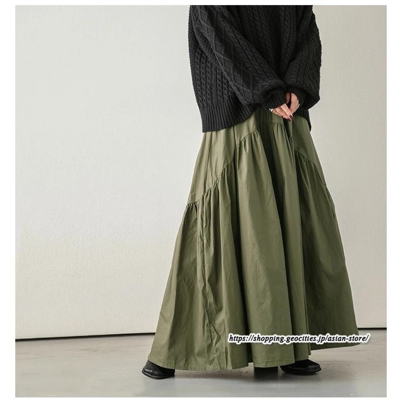 ロングスカート フレアスカート 綿スカート ウエストゴム ハイウエスト aラインスカート ワイド 体型カバー 無地大人 ギャザー レディース 秋物 春秋