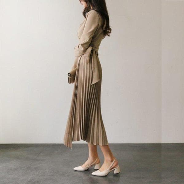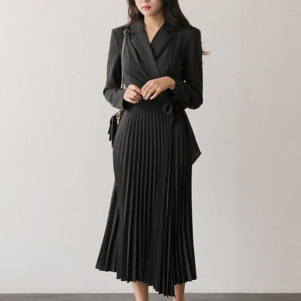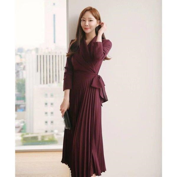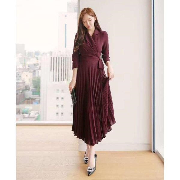 の入荷 在庫一掃 ワンピース レディース 春 きれいめ 韓国風 ロング丈 長袖 プリーツワンピース aライン 上品 着痩せ お洒落 大人 卒業式 母 通勤 OL 二次会