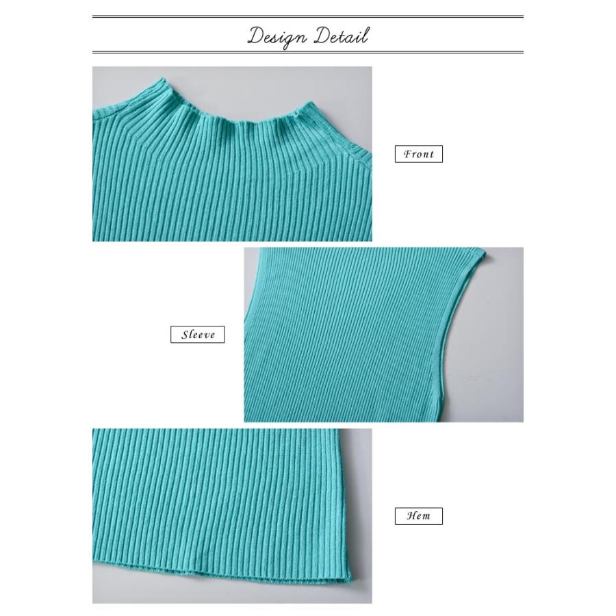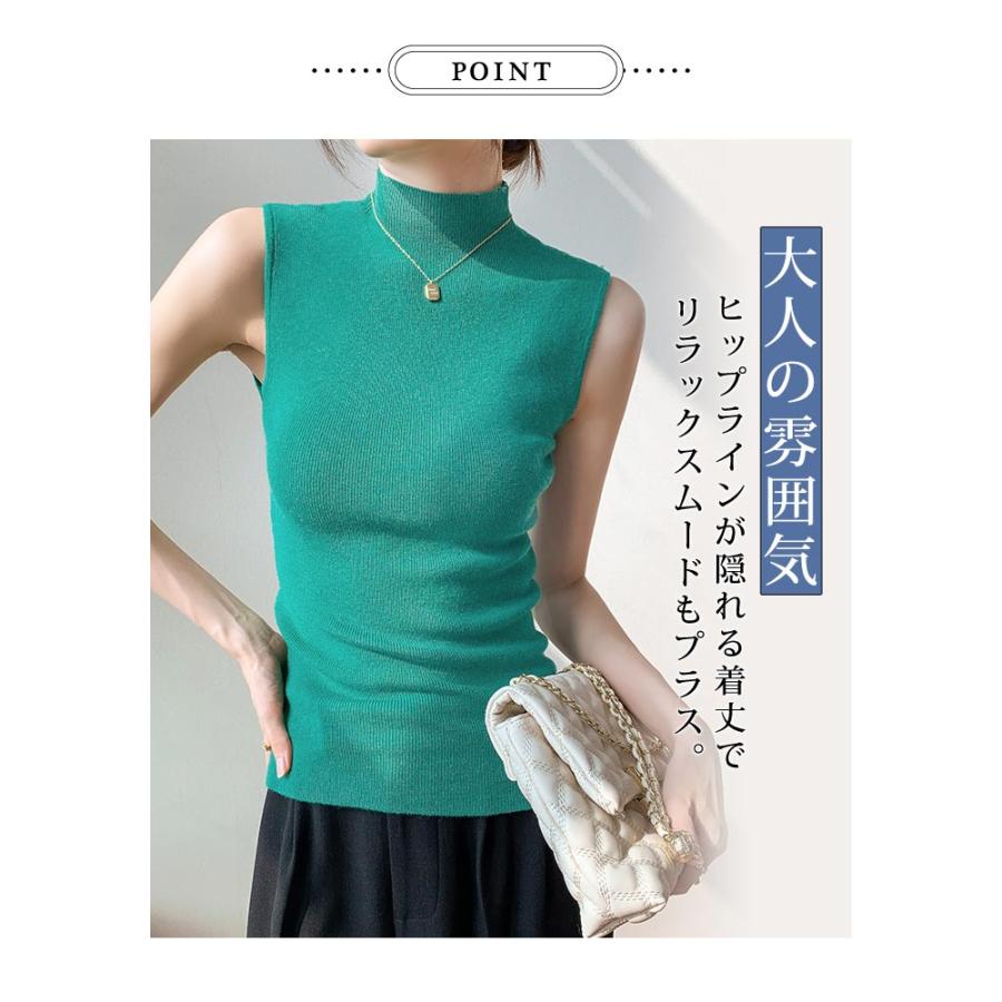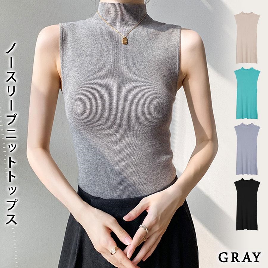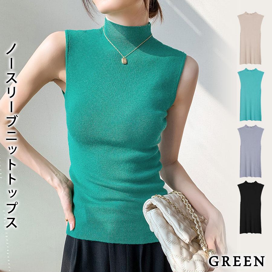 ニットトップス レディース 春 黒 ノースリーブ トップス サマーニット 無地 グリーン グレー ブラックル リブニット ベージュ 20代 30代