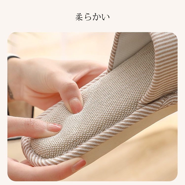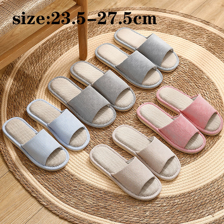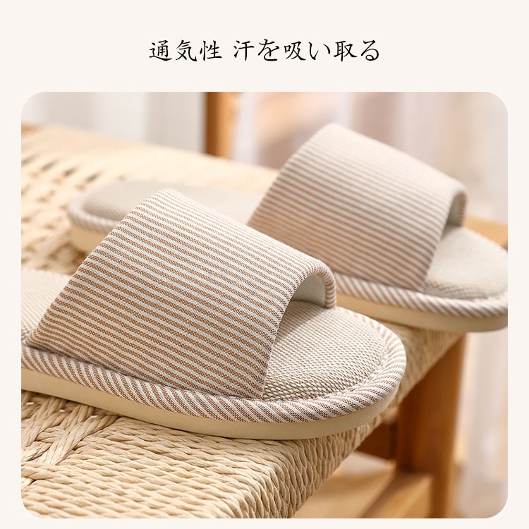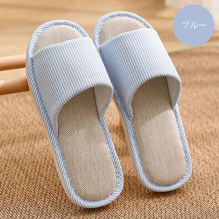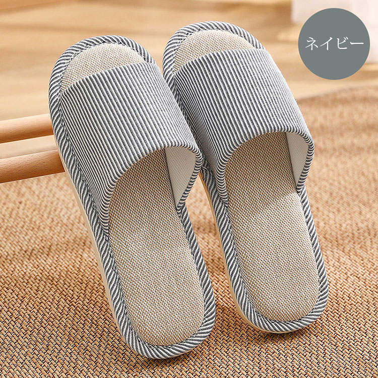 スリッパ おしゃれ ストライプ柄 ルームシューズ カップル メンズ レディース 室内用 リネンスリッパ 部屋履き 室内履き 来客用 静音 滑り止め 通気性 汗を吸い取る 疲れない 蒸れない 散歩 厚底