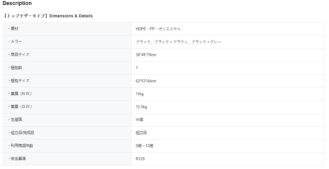 ※お子さま身長が100cm未満の場合、安全性確保のためにはトップテザーの使用がおすすめです。