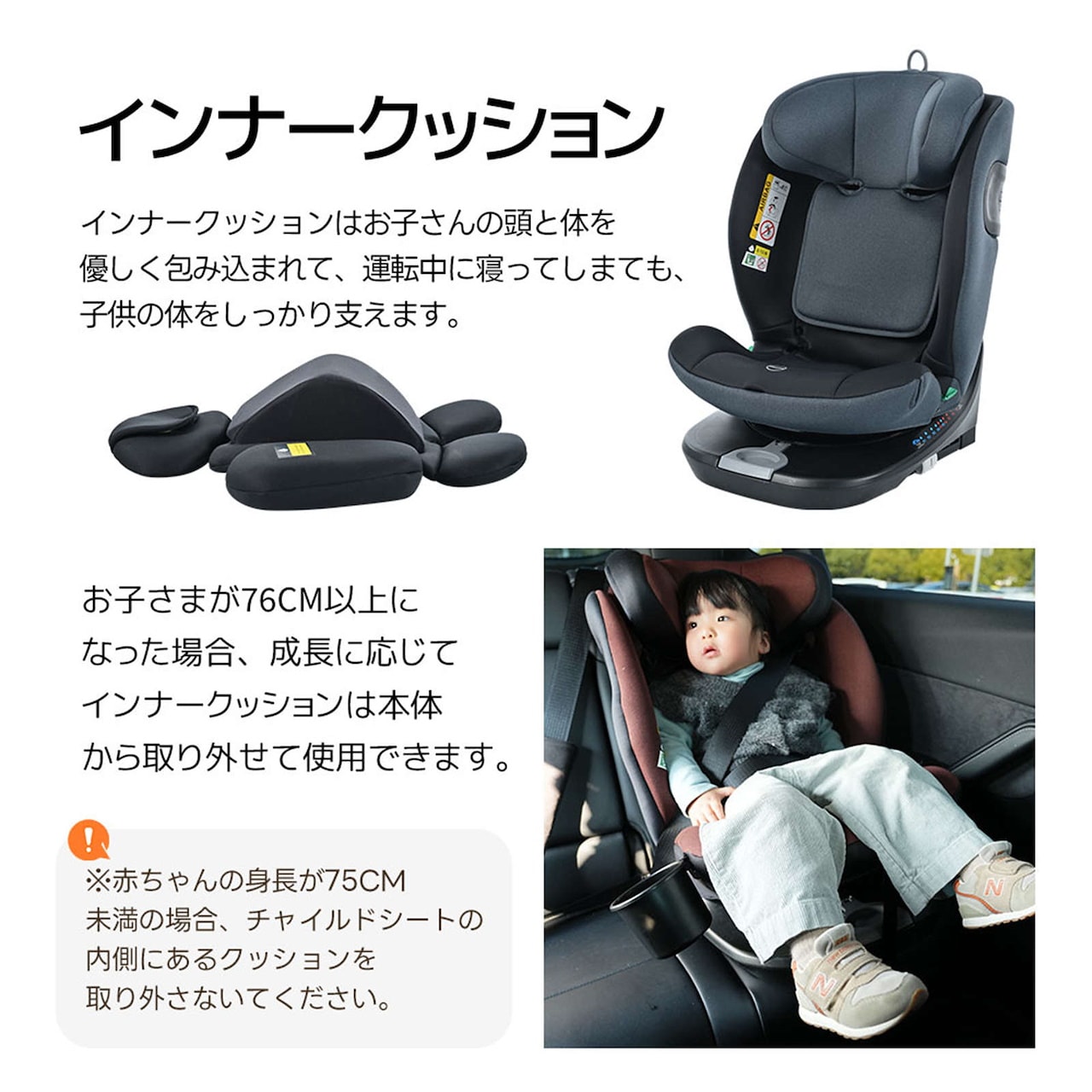 生まれた赤ちゃんから、ジュニアシート離れする年齢まで長く使えます。また、成長にと共に、取り外せるインナークッションとシートに調節機能がついで、子供の体型にフィットできます。