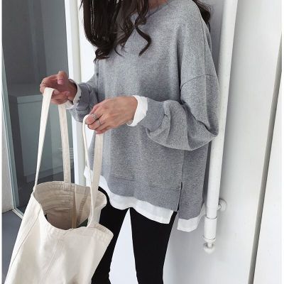 2025新作 高品 質 シンプル スウエット 口ンT 百掛け フェイクレイヤード 運動 トップス アウター 可愛い ロングパーカー 着痩せ パーカー 大きめサイズ 長袖 Tシャツ