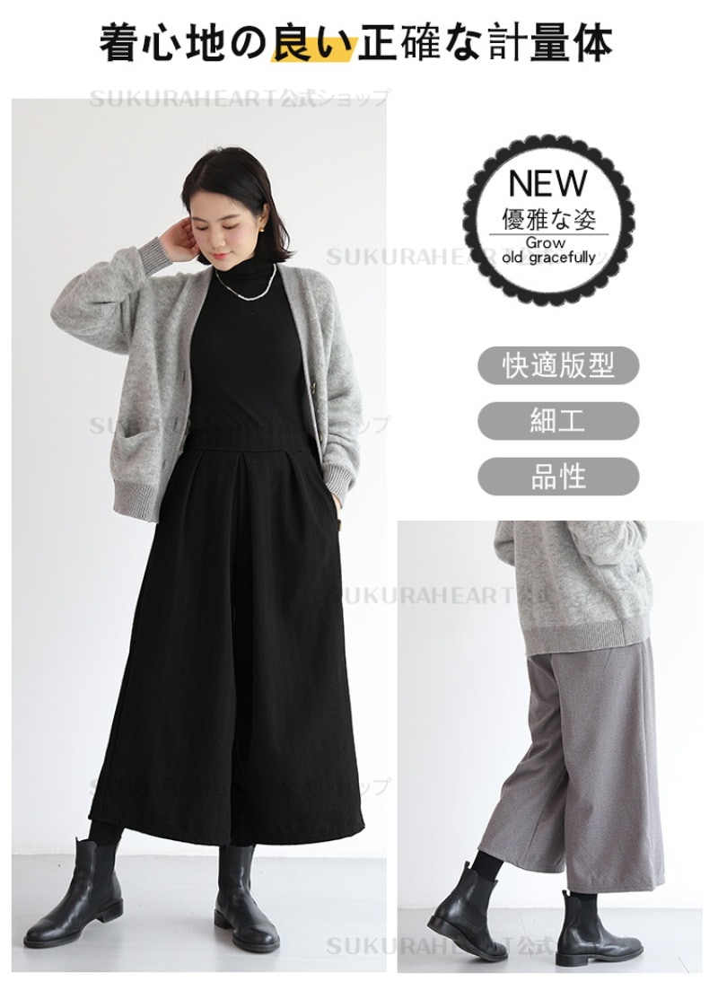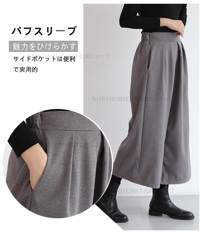 新品 ガウチョパンツ 春服 フレアパンツ スカーチョ 春秋冬 ワイドパンツ レディース キュロットパンツ タック スカンツ ウール 防寒 保温 イージーパンツ 大きいサイズ 韓ファッション