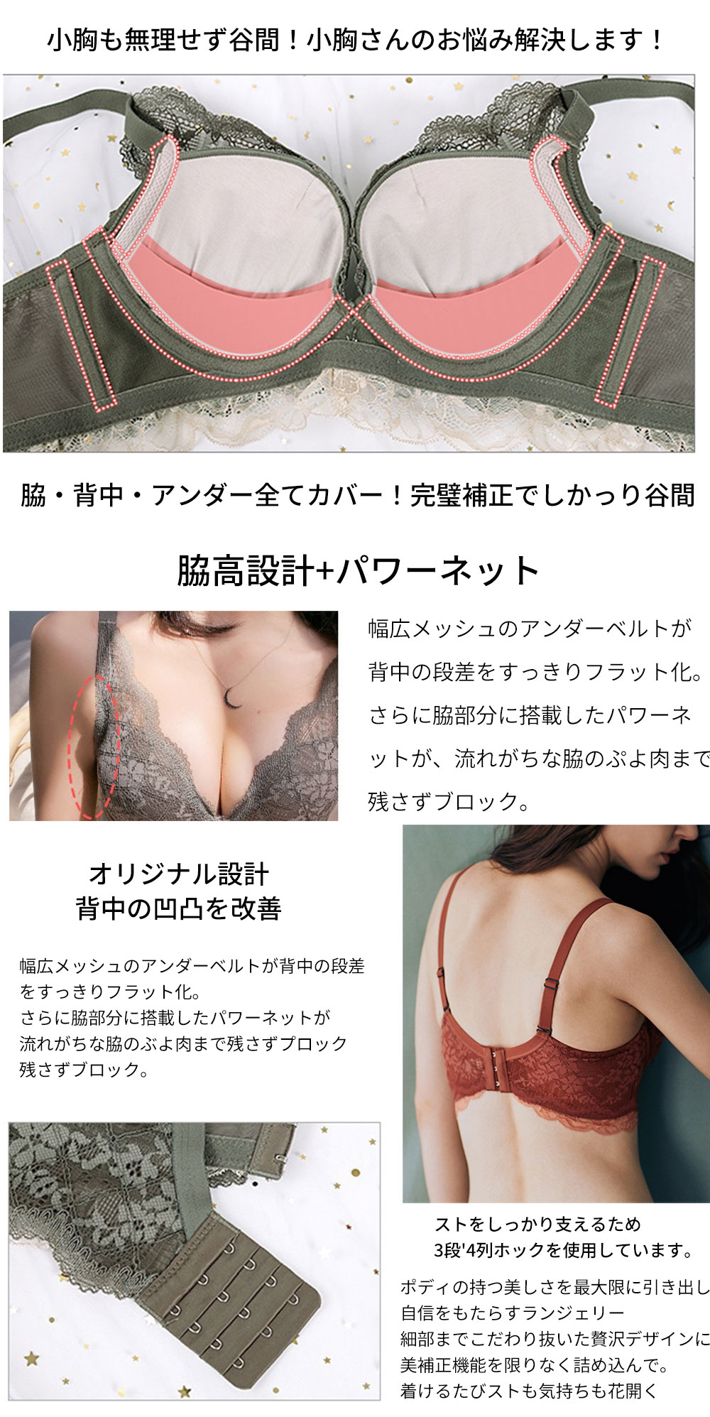 ブラ&ショーツ上下セット 大人レースブラ&ショーツセット ノンワイヤーなのにしっかり盛り 脇高 補正 しっかり 谷間 レース やわらか ノンワイヤー ブラ 美盛 美胸 上下セット