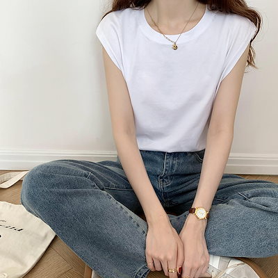 ホワイト 袖なし Tシャツ レディース ゆったり 夏 新作 ファッション ベスト トップス アウターで着用 キャミソール