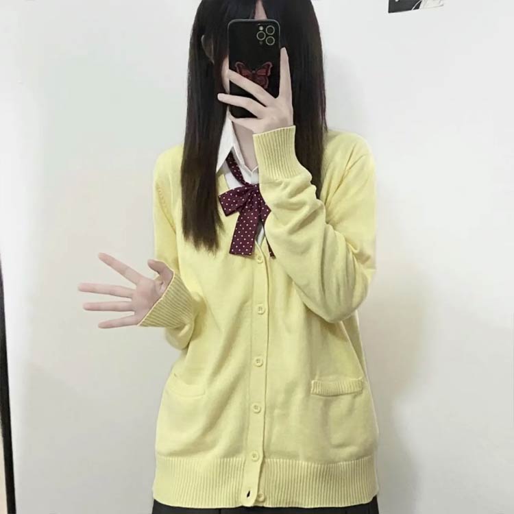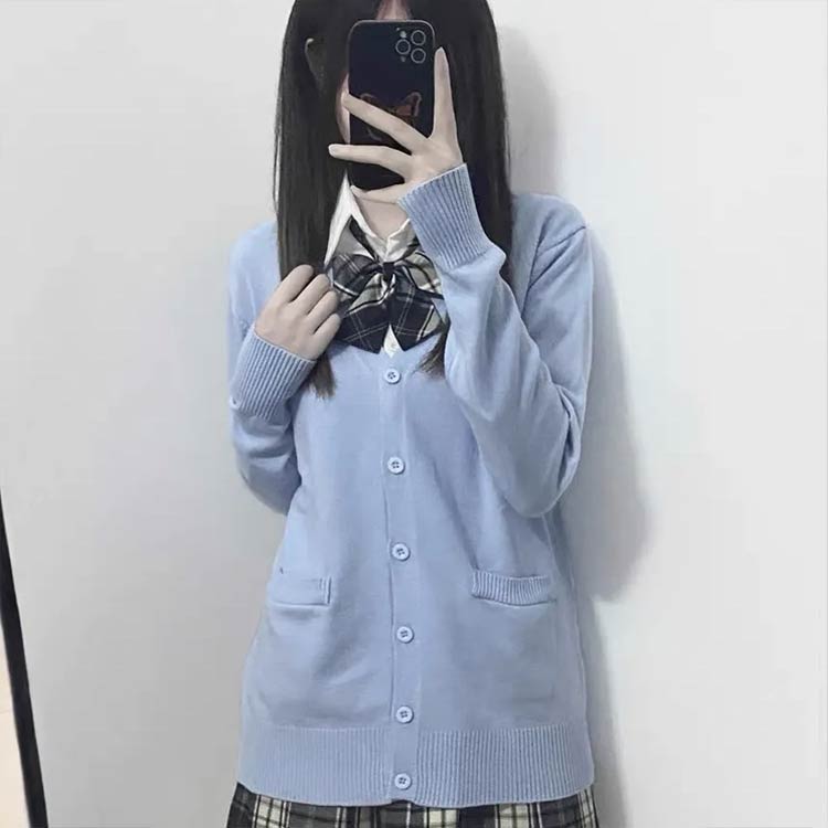 長袖 スクールカーディガン 学生服 女子 春秋 男女兼用 ニット 学校 高校生 中学生 通学 綿 カーディガン