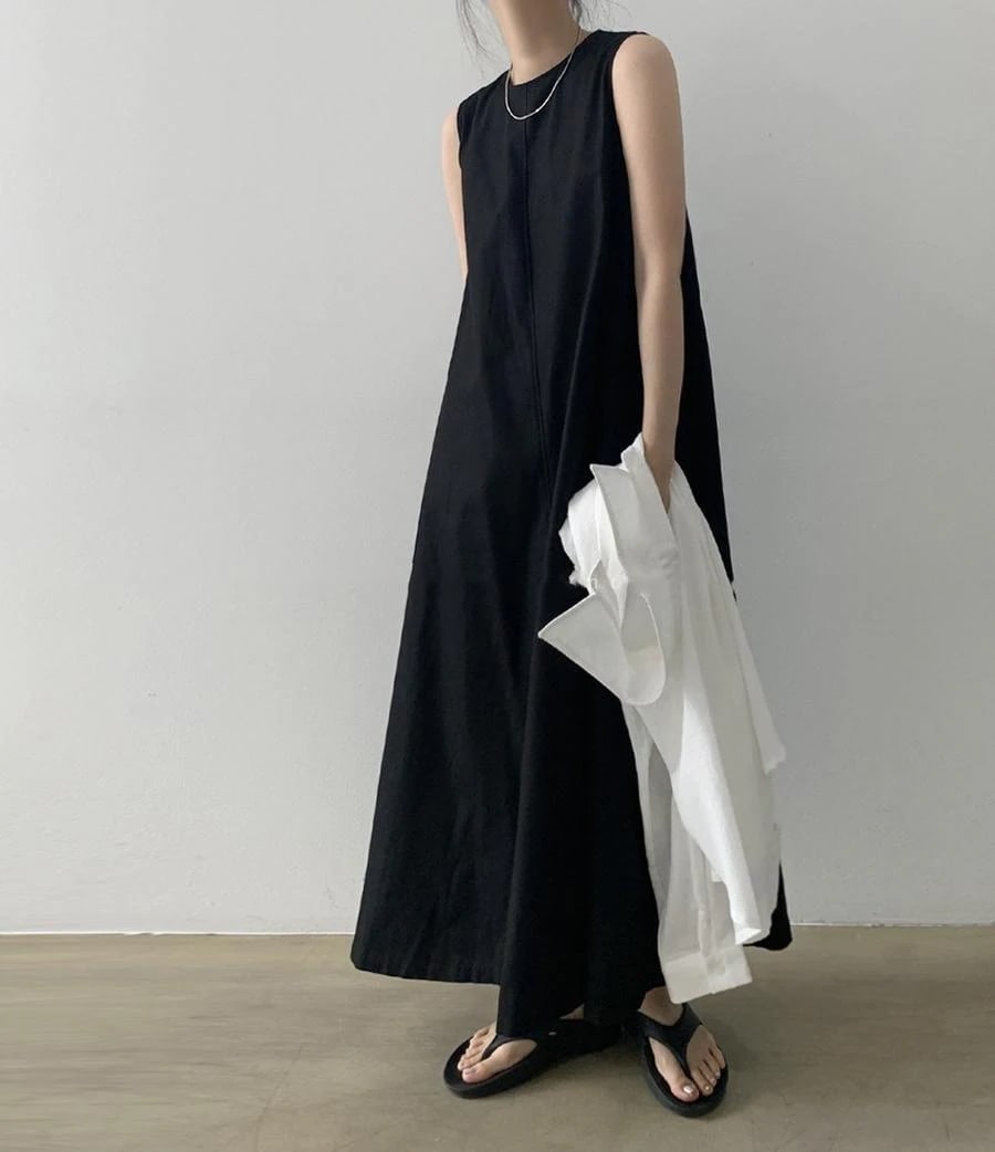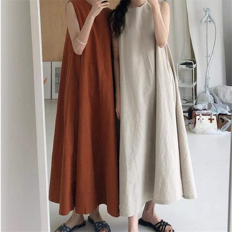 キャミワンピース 袖無し 夏新作 ロングワンピース 綿麻 キャワンピース レディース リネン ゆったり 大きいサイズ ノースリーブ シャツワンピース