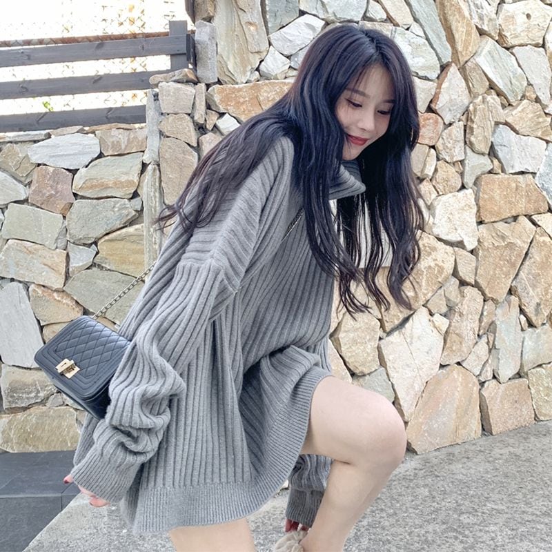 タートルネックニット韓国ファッション ニットセーター トップス ニット インナーベーシックニットタートルネック ゆったりスウェット 着痩せ ニット トップス