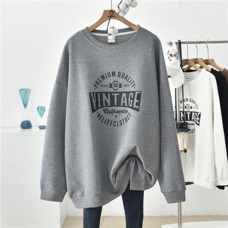 2025秋冬服 スウェット ワッフルチェック 長袖 大きいサイズ ゆったり スリム カジュアル 百掛け レディーストップス トレーナー