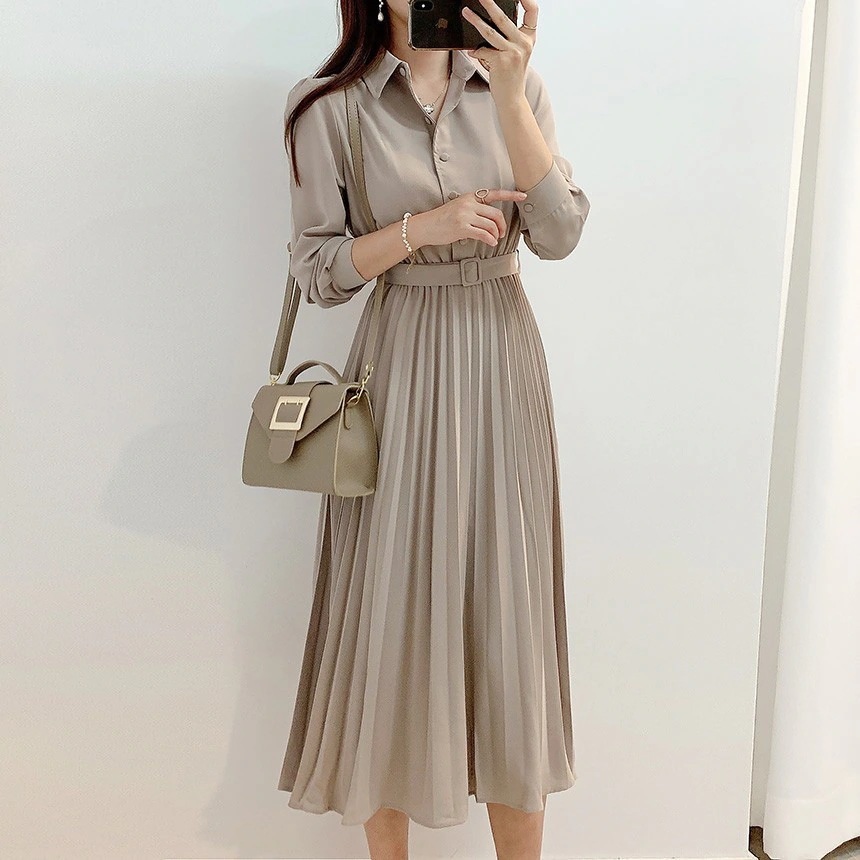 本日の限定商品 シフォンワンピース 韓国 2025 新作 ワンピース 着痩せ バブル袖 シャツワンピース シャツワンピ