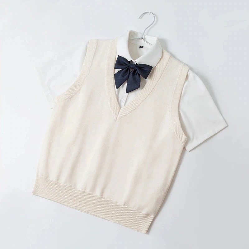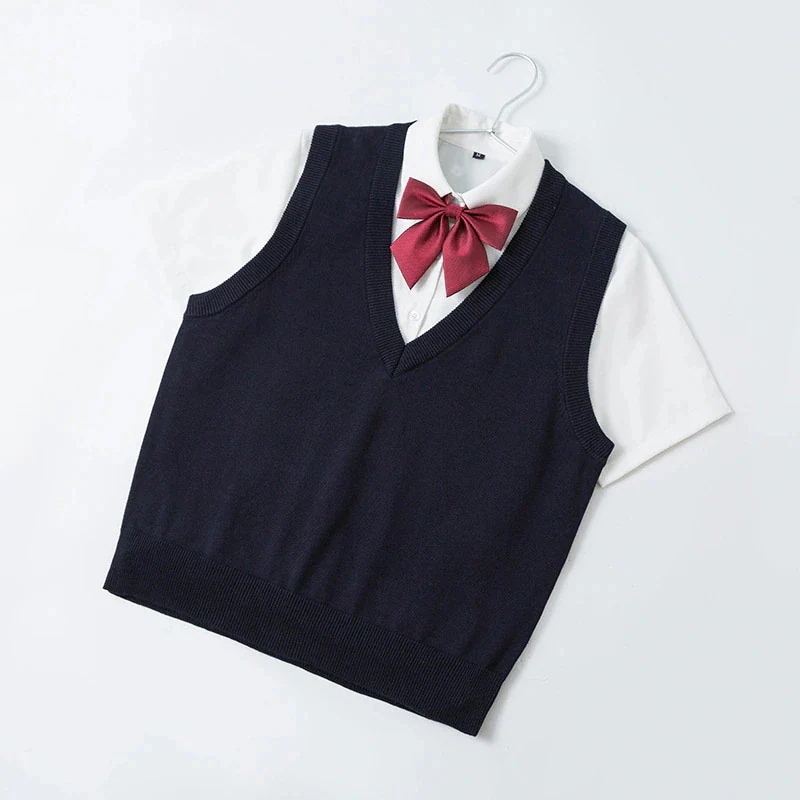 25 スクールベスト ニットスカートセーター ネイビー 女子高生 制服 学校 セーラー服 コス コスプレ 職場 ユニセックス 白 黒 卒業式入学式