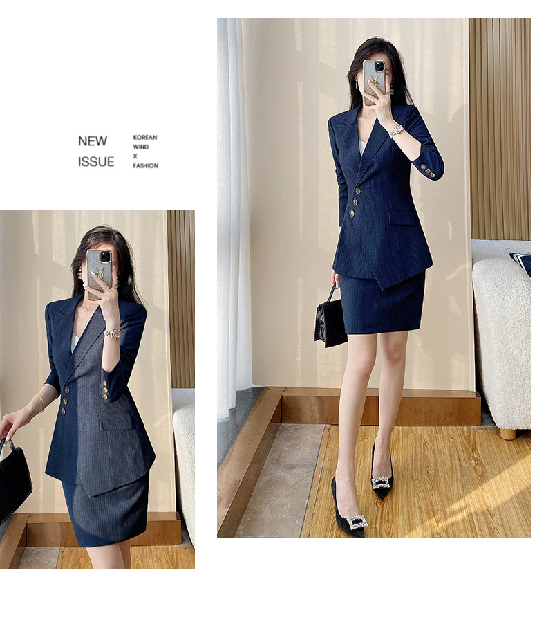 Color: Blue/ブルー(ジャケット+スカート) Black/ブラック(ジャケット+スカート) Grey/グレー(ジャケット+スカート) Blue/ブルー(ジャケット+パンツ) Black/ブラック(ジャケット+パンツ) Grey/グレー(ジャケット+パンツ)