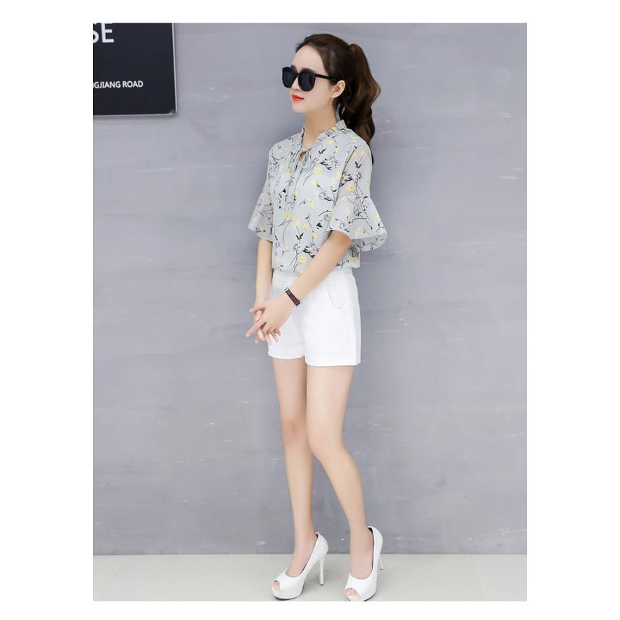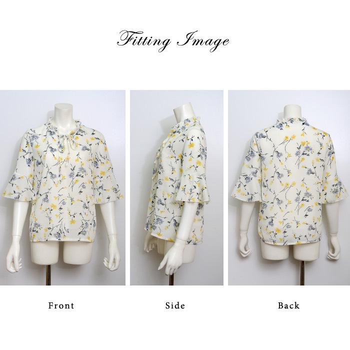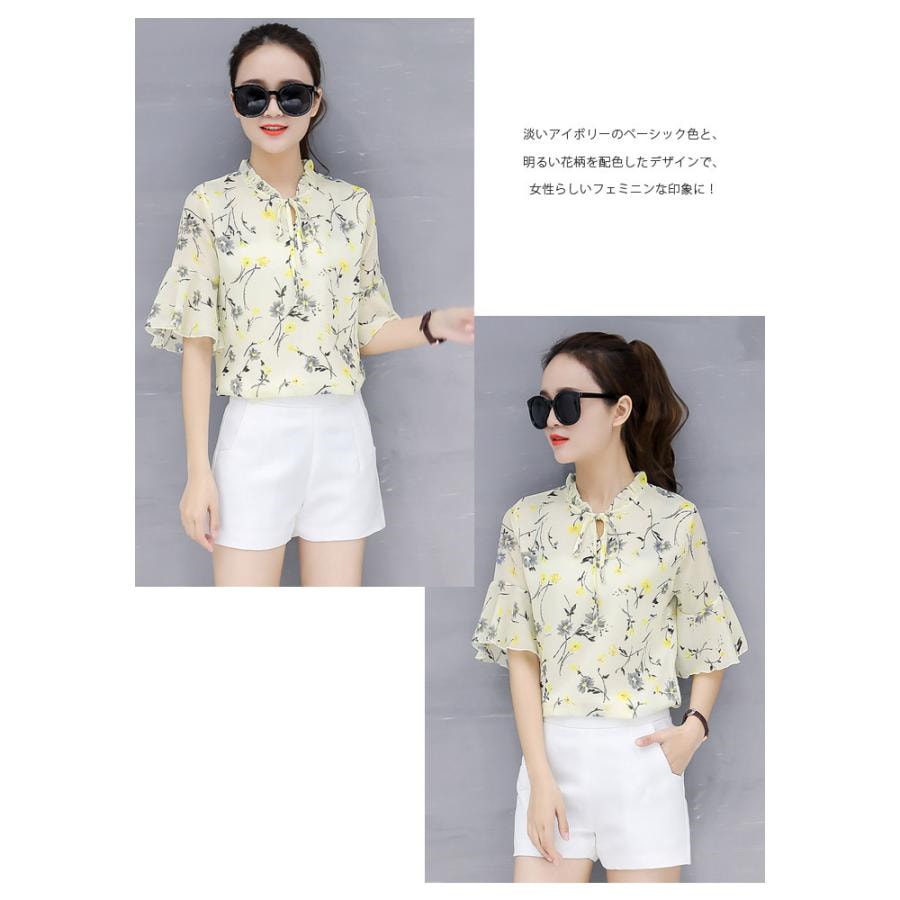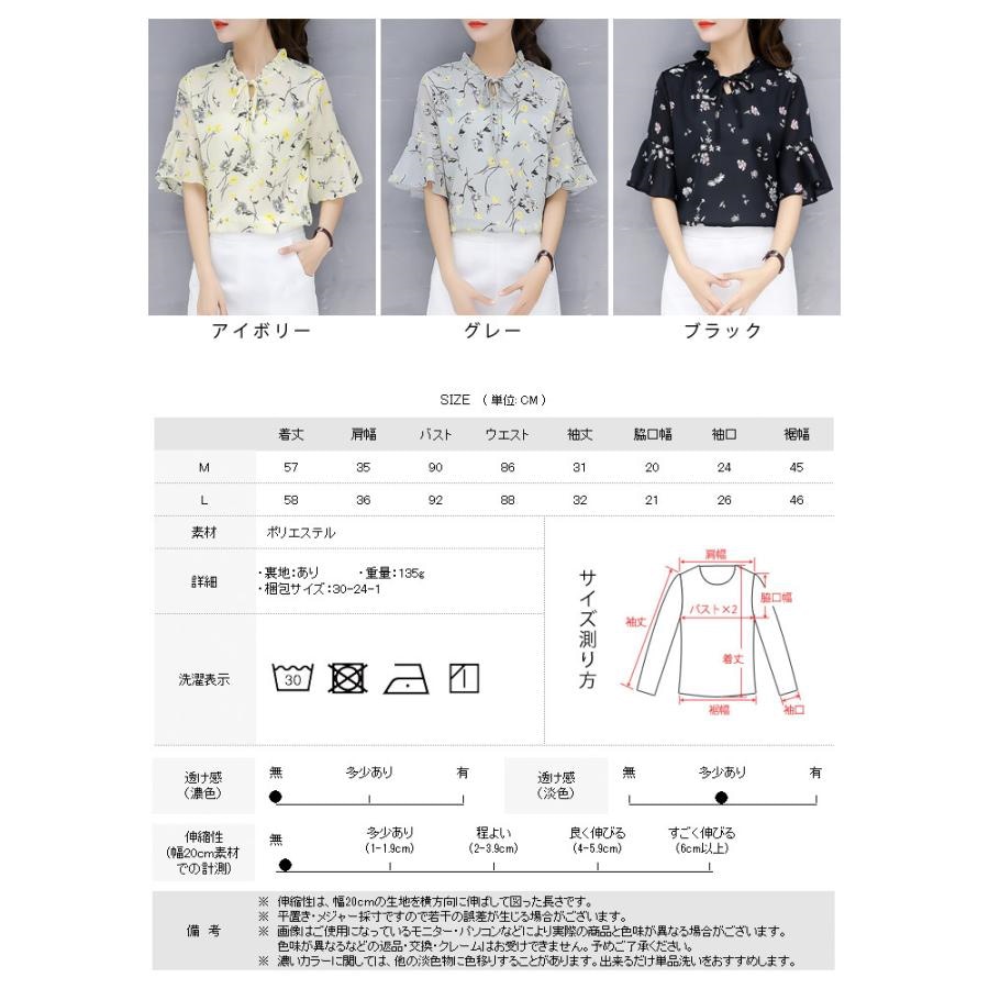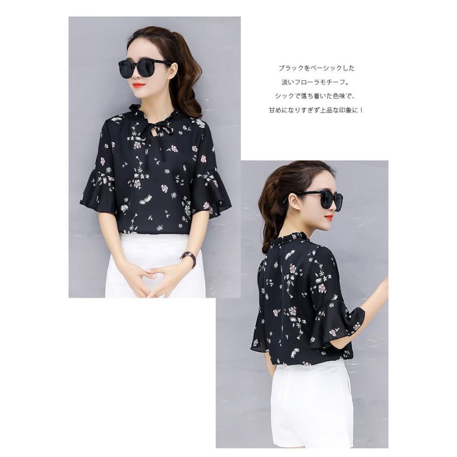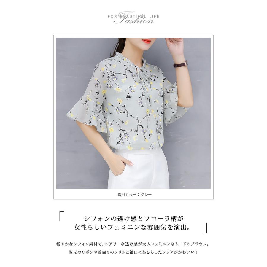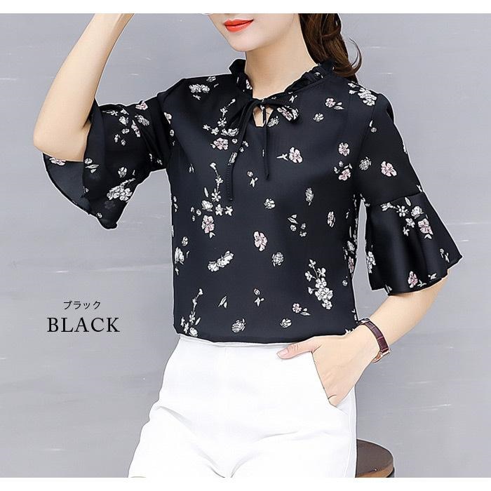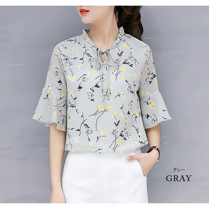 ブラウス レディース 春夏 黒 花柄 シフォン アイボリー グレー ブラック 大人 カジュアル シャツ トップス 半袖 チュニック 20代 30代 40代