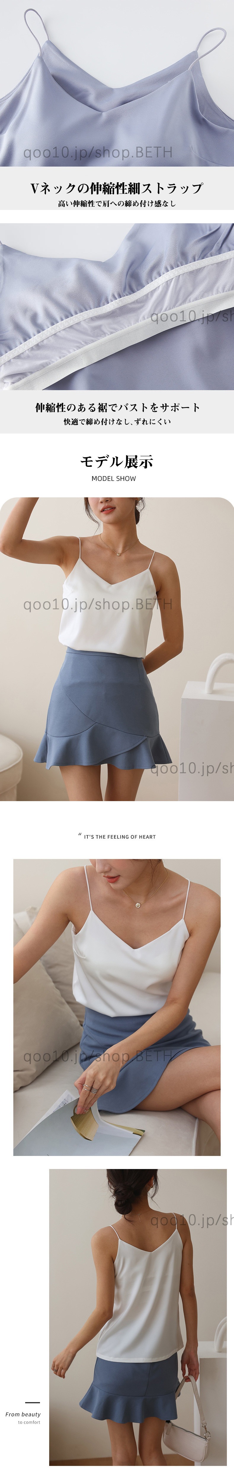 Vネック&一字肩デザインタンクトップ 女性らしさを引き立てるシンプル&エレガント 柔らかい素材で着心地良い 通気性がよく快適な着用感夏にぴったり シンプルで使いやすいデイリートップスインナーにもで
