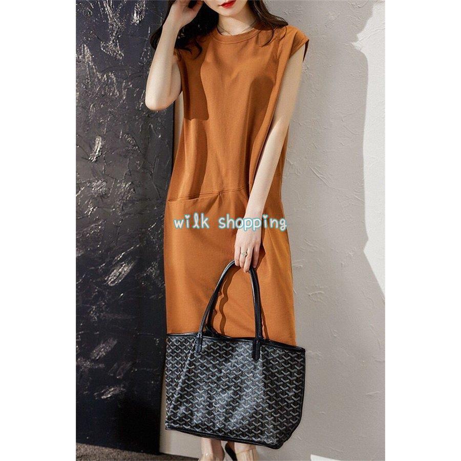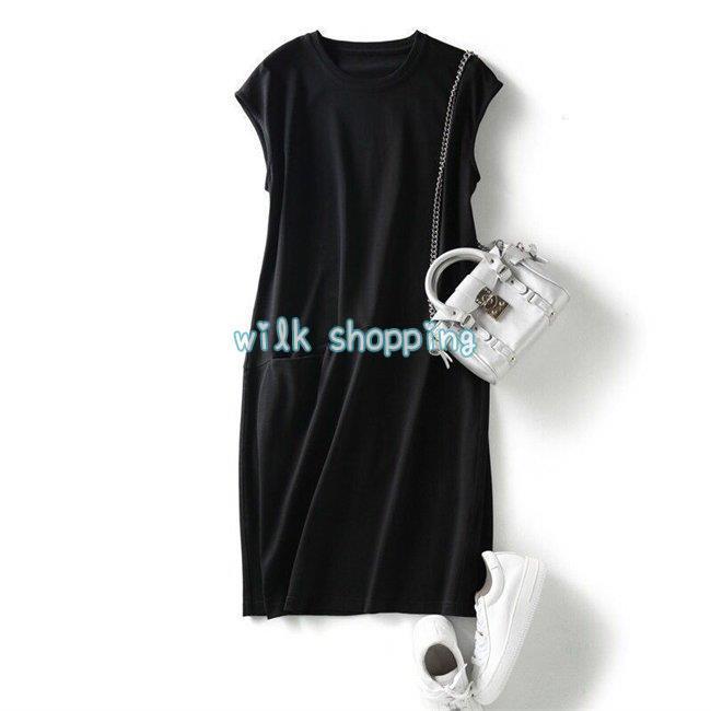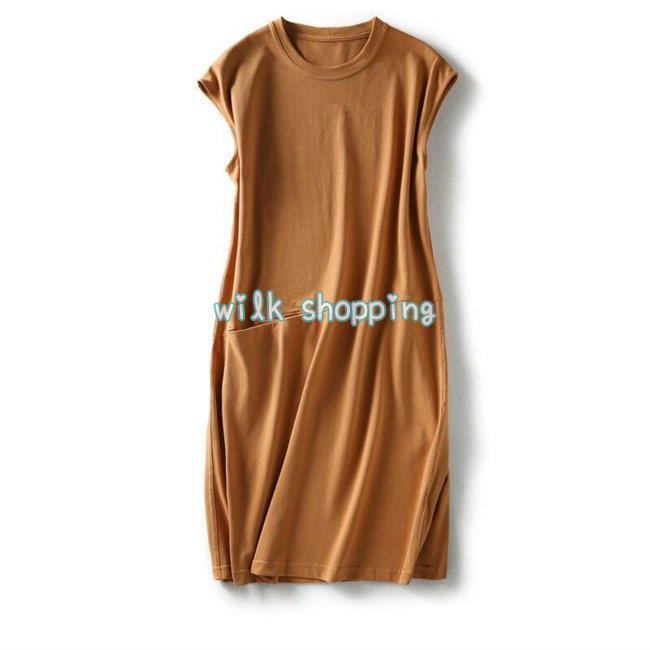 ワンピース Tシャツ レディース 綿 綿混紡 大きいサイズ ゆったり 春夏 ロング丈ビッグポケット ノースリーブ その他 ワンピース ドレス