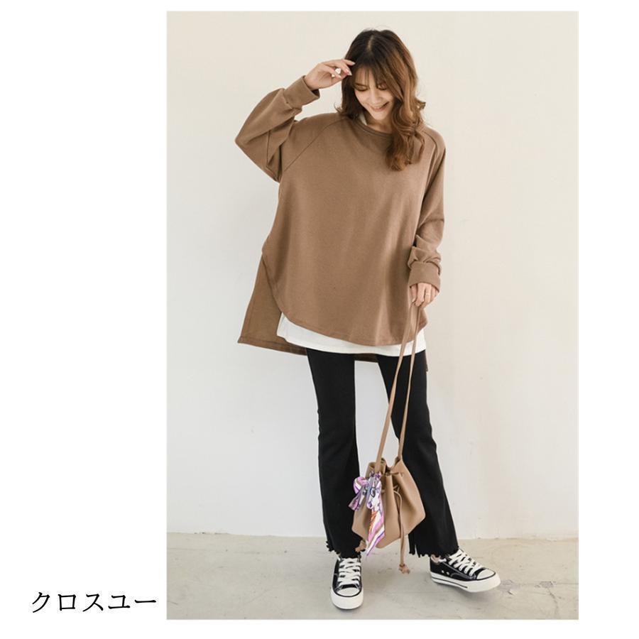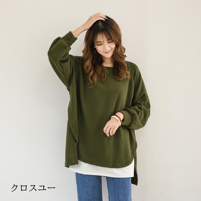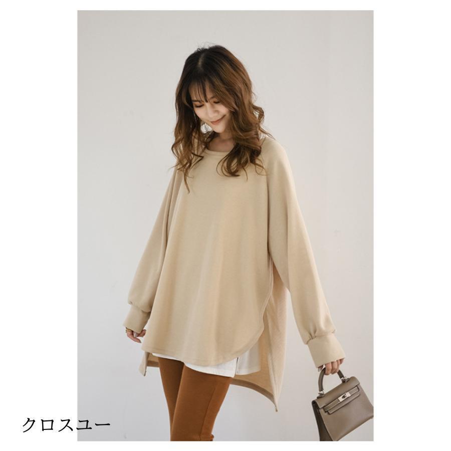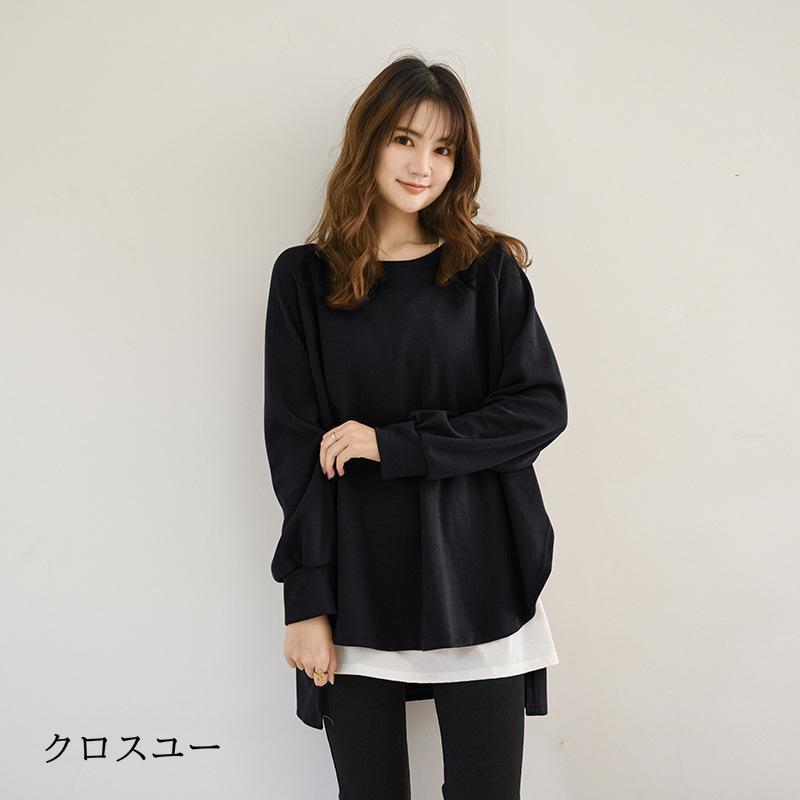 トレーナー レディース 長袖 カットソー スウェット 春秋 重ね着風 トップス スリット カジュアル パーカー 通勤通学着痩せ ゆったり プルオーバー