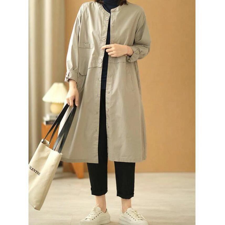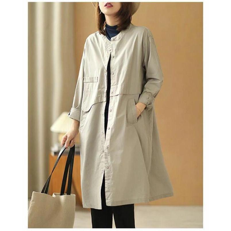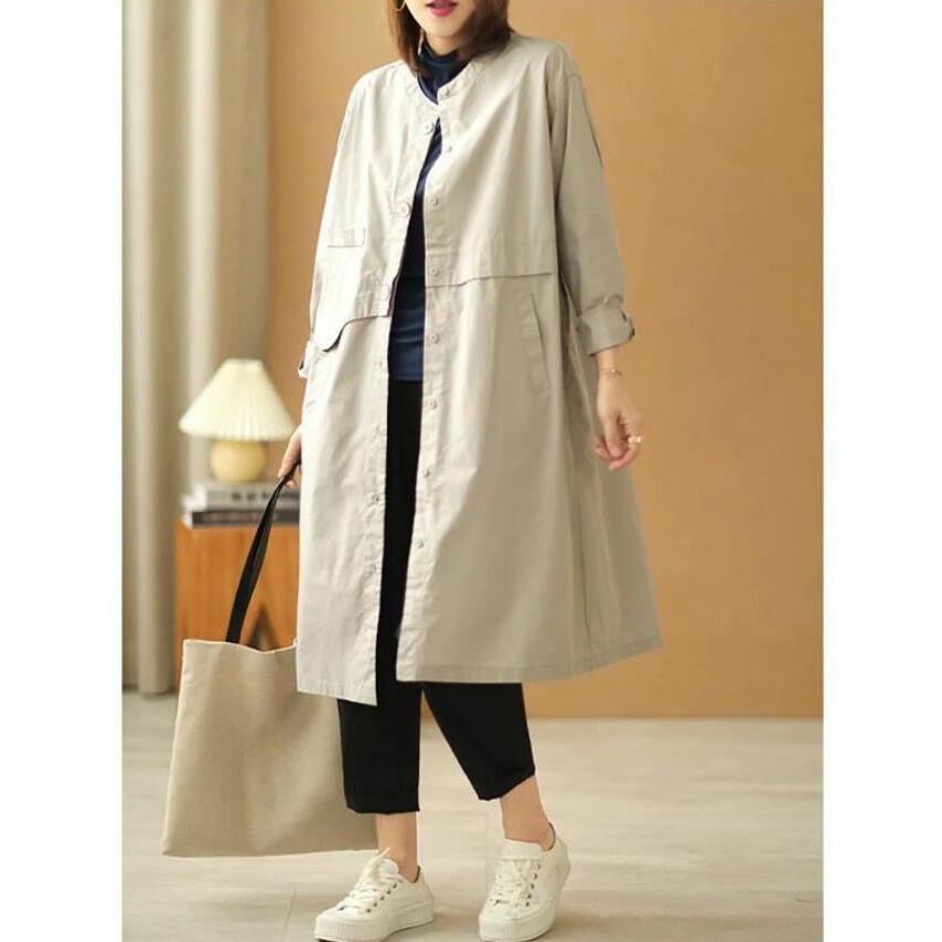 トレンチコートノーカラースプリングコートレディーストレンチシャツゆったり体型カバーカジュアル着痩せ通勤通学きれいめ大きいサイズ春秋 その他 アウター