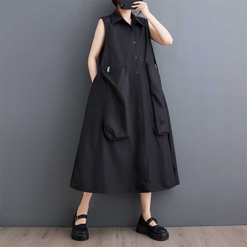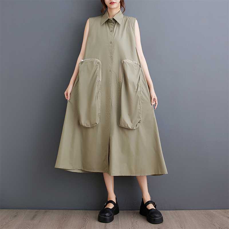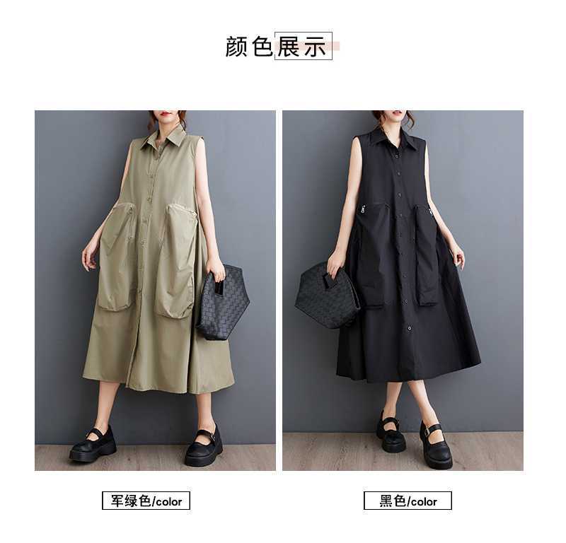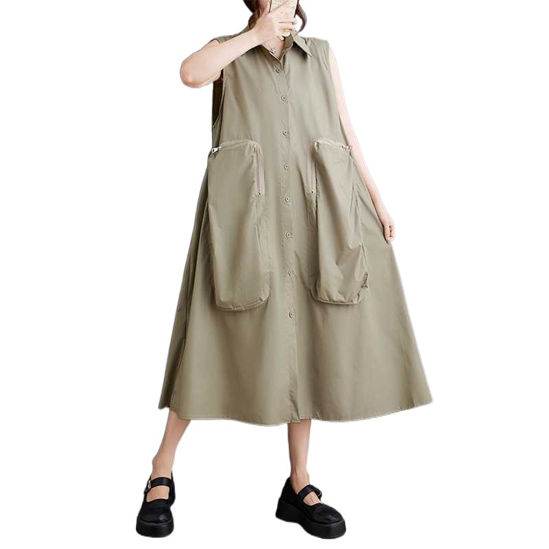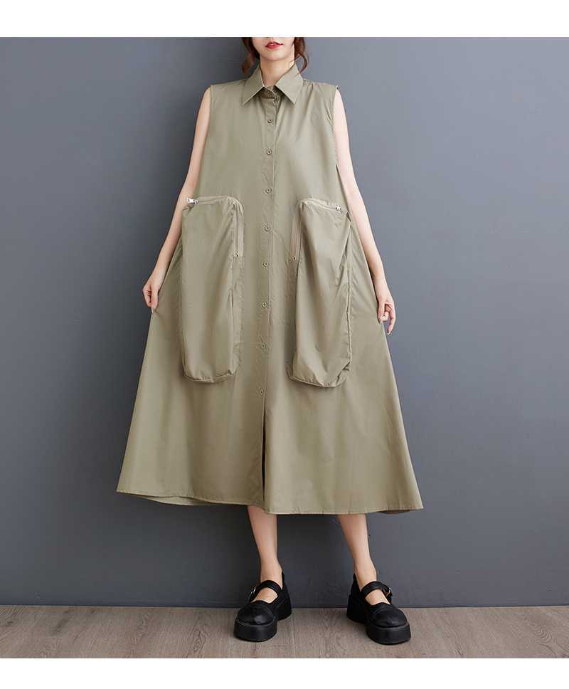 2025夏新品 大きいポケット ドッキングワンピース 大きいサイズ 体型カバー 袖なし レディース ノースリーブ ワンピース メガ割