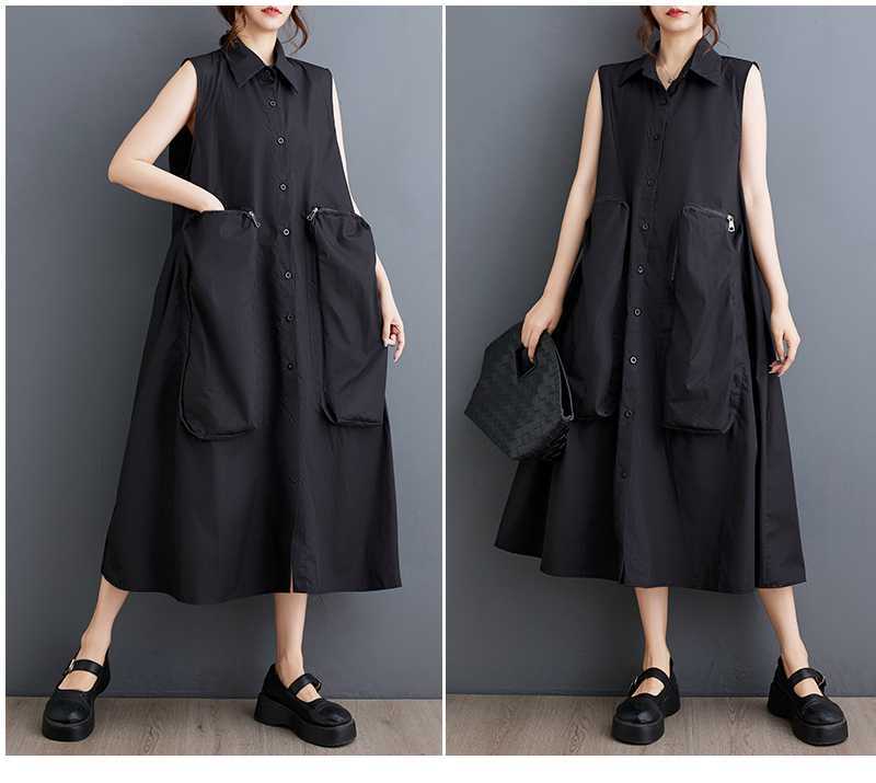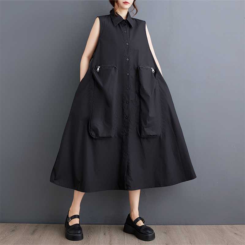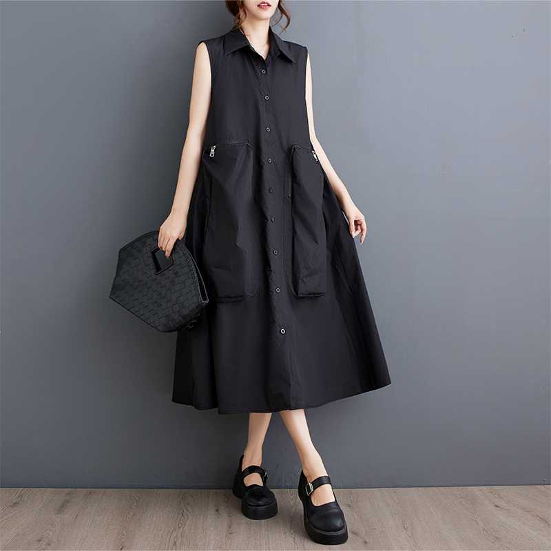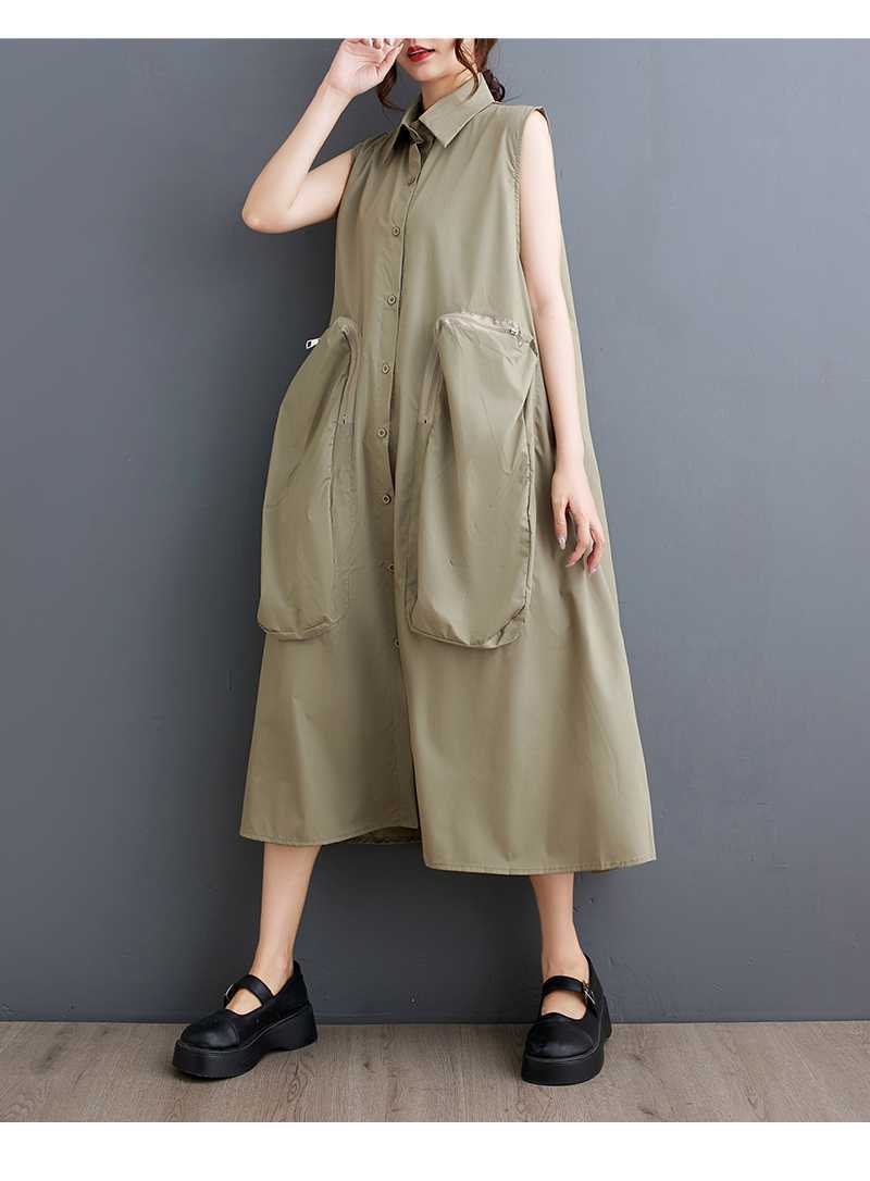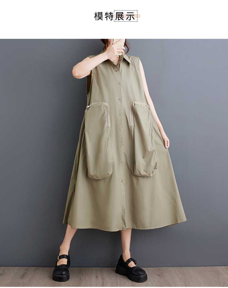 2025夏新品 大きいポケット ドッキングワンピース 大きいサイズ 体型カバー 袖なし レディース ノースリーブ ワンピース メガ割