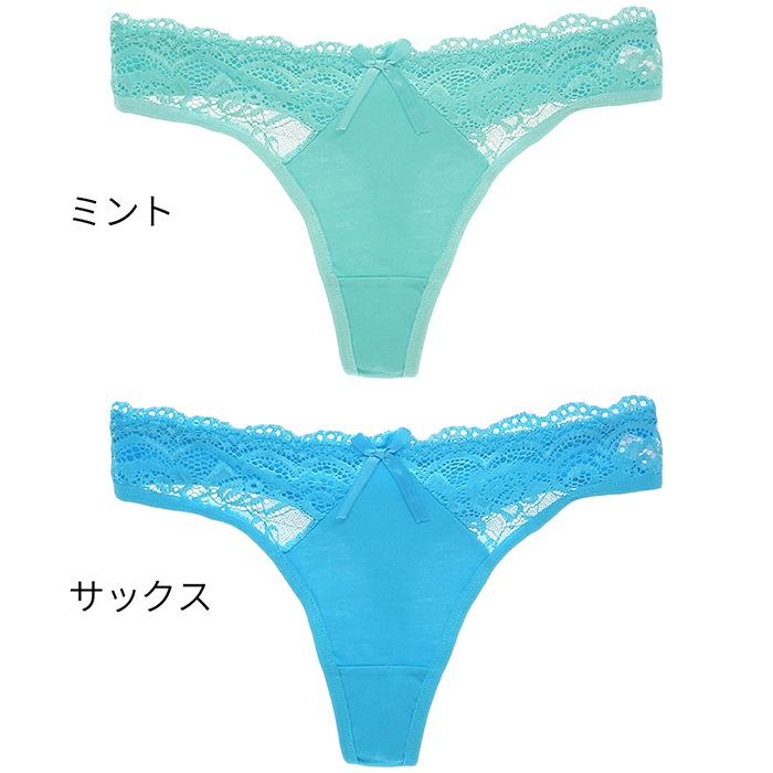 Tバック レディース 綿95% リボン レース セクシー ストレッチ 伸縮性 おしゃれ コットン パンティ インナー 下着 黒 白 緑 水色 M L XL rt-020