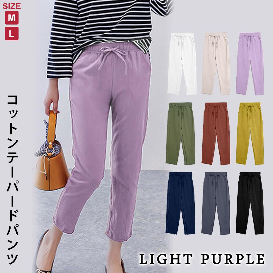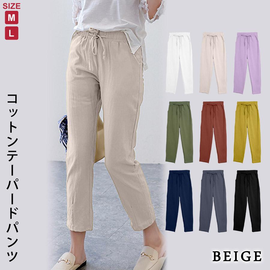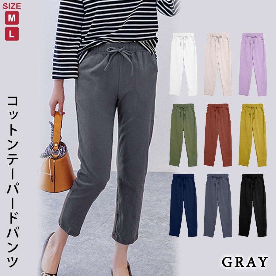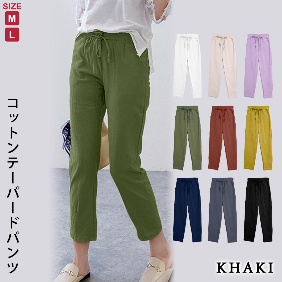 テーパードパンツ レディース 春 黒 白 パンツ クロップド ウエストゴム7分丈 無地 ネイビー グレー ブラック ホワイト ベージュ カーキ