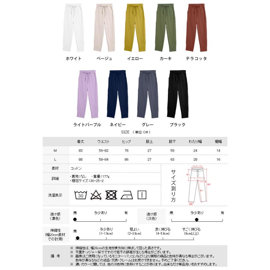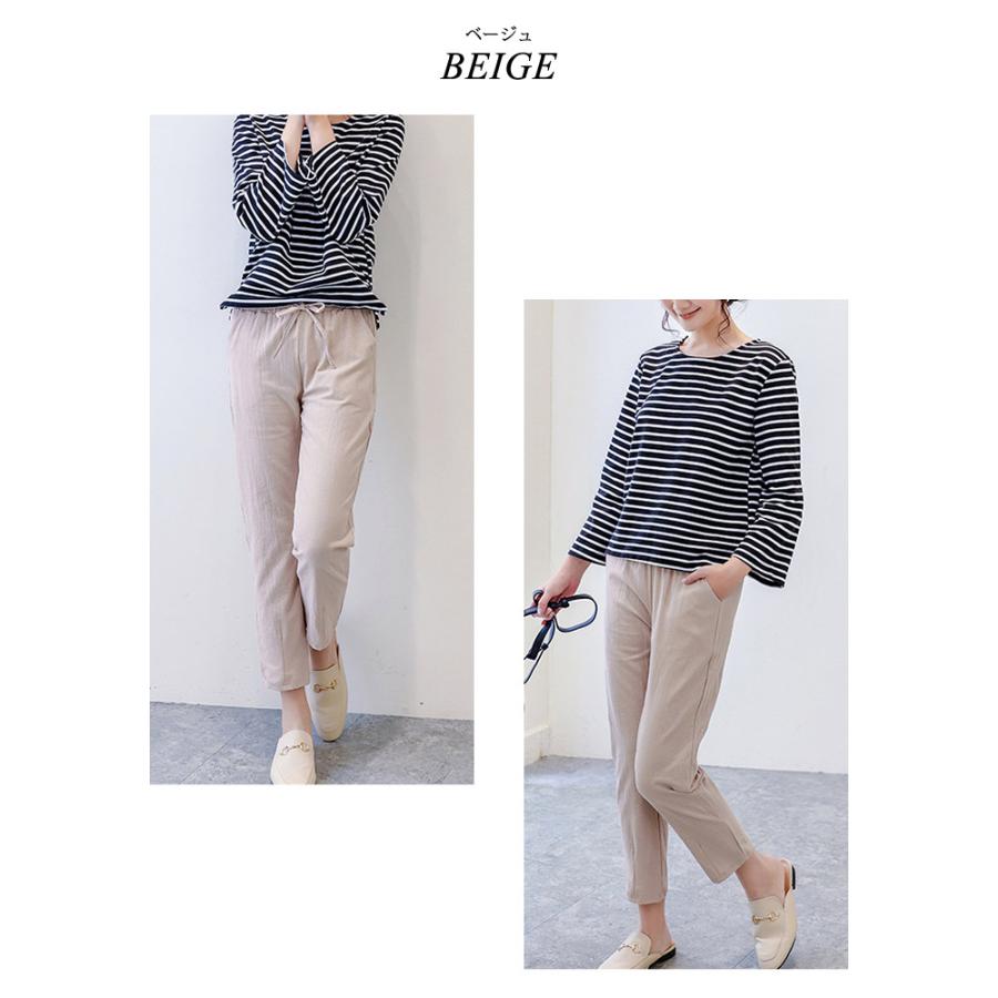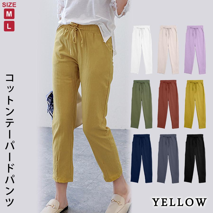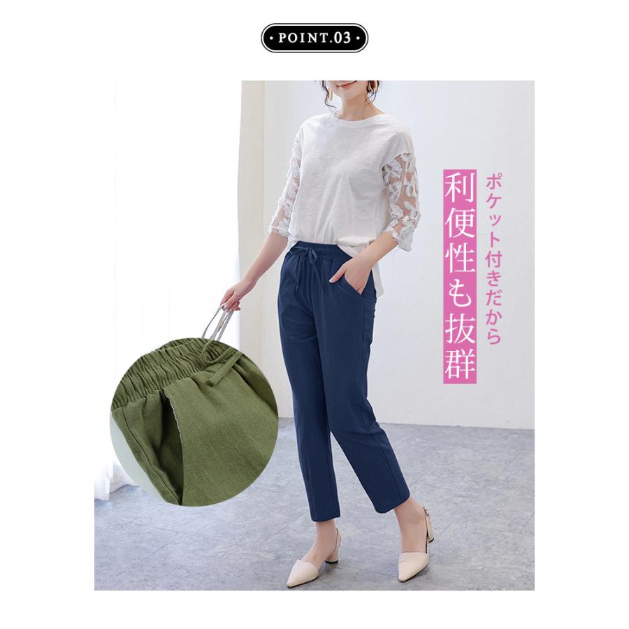 テーパードパンツ レディース 春 黒 白 パンツ クロップド ウエストゴム7分丈 無地 ネイビー グレー ブラック ホワイト ベージュ カーキ