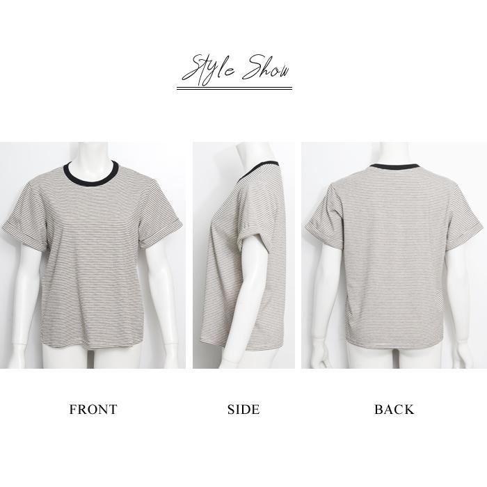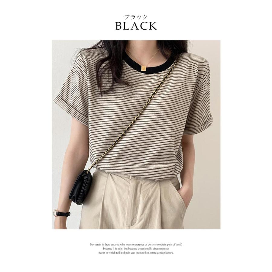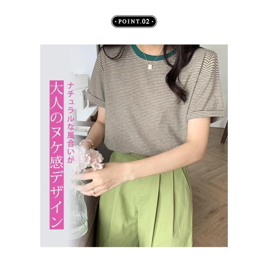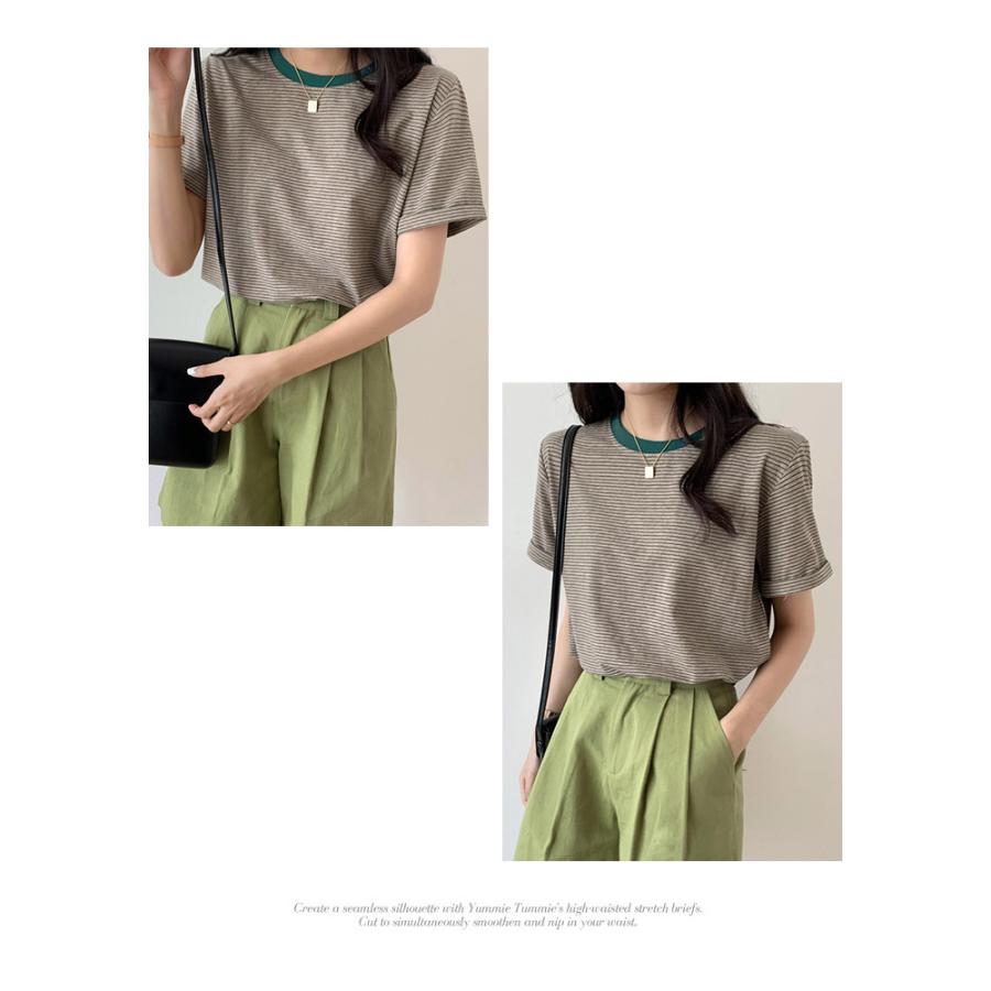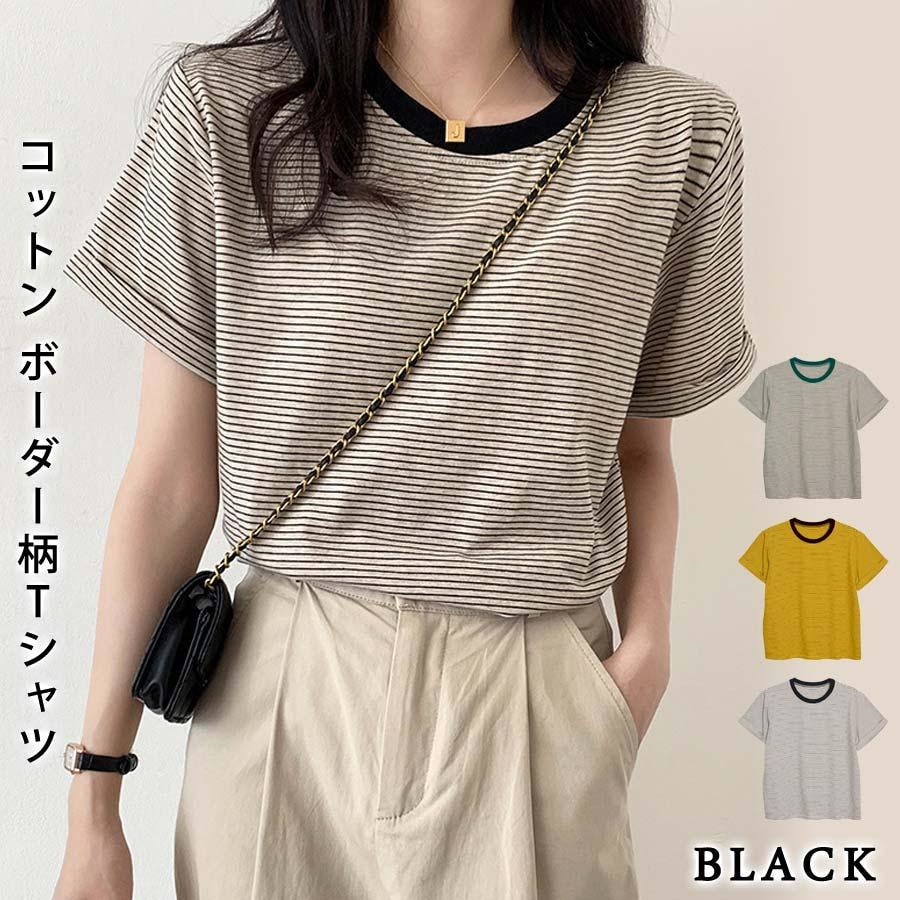 Tシャツ レディース 春 夏 春夏 黒 ボーダー 半袖 トップス ボーダー イエロー ブラック ストレッチ 半袖Tシャツ Uネック グリーン 20代 30代