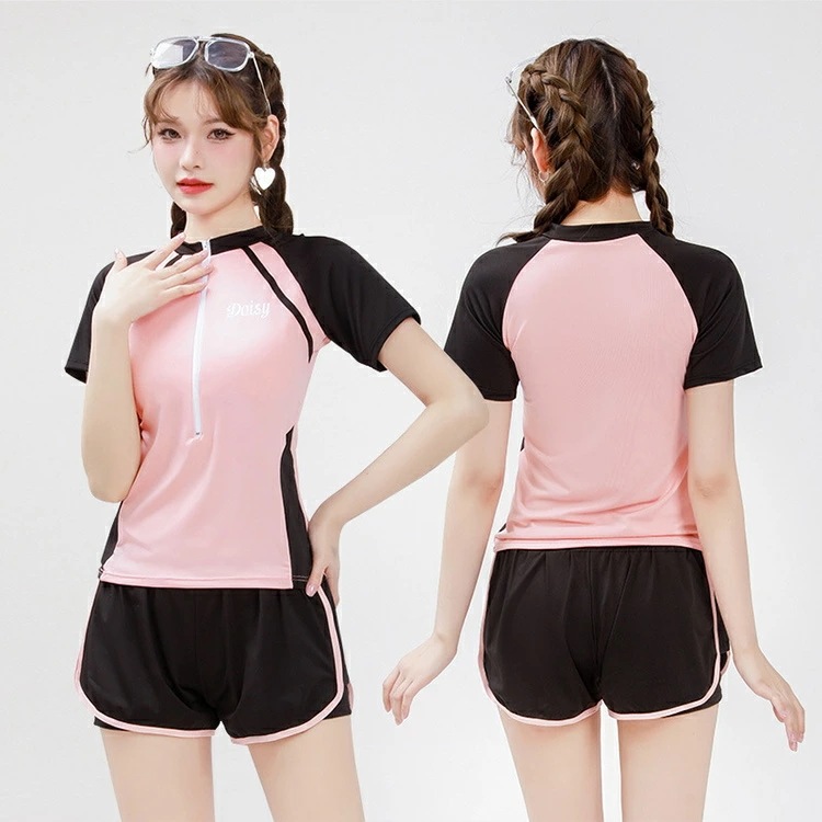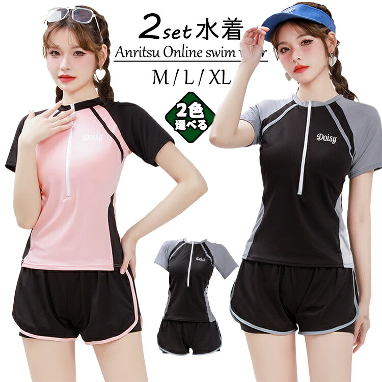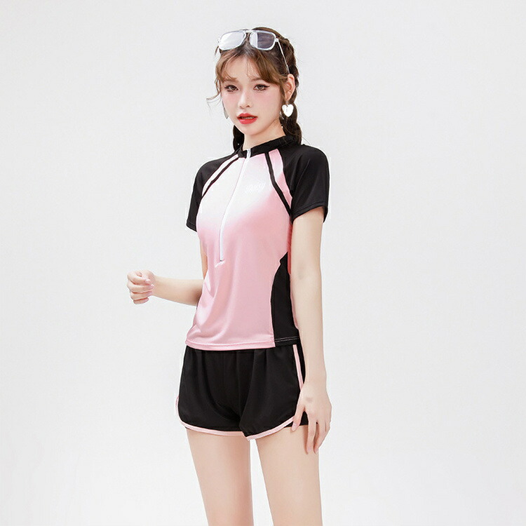 露出控え 水着 レディース 体型カバー 韓国 中学生 高校生 大学生 レギンス かわいい 2点セット セットアップ 水着 おしゃれ 韓国風 パンチラ 防止 ショートパンツ スポーティー ラッシュガード