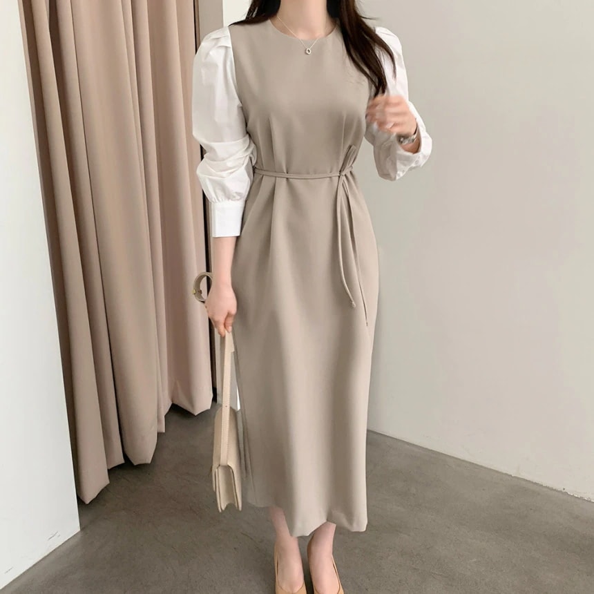 シフォンワンピースの早春新作 ワンピース レディース ブルーのストライプワンピースカジュアルシンプル通勤 OL ファッション 新品追加 長袖ロング マキシ丈ワンピ
