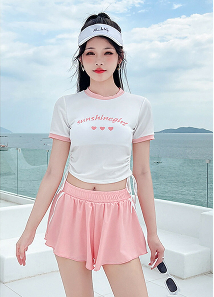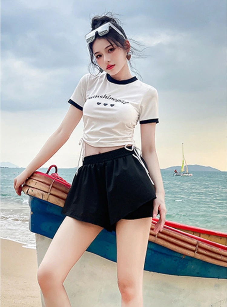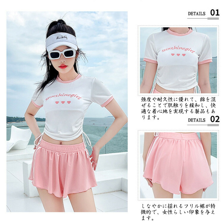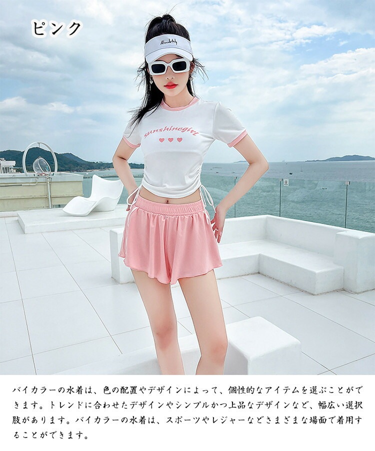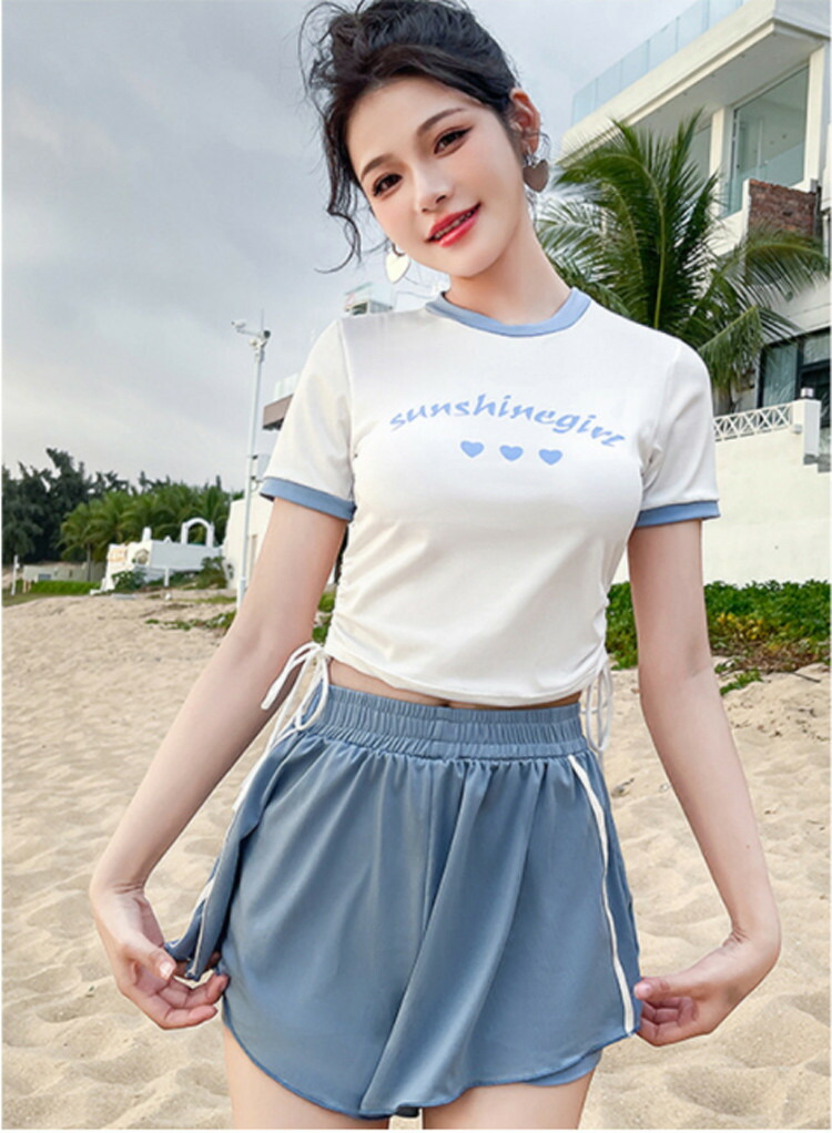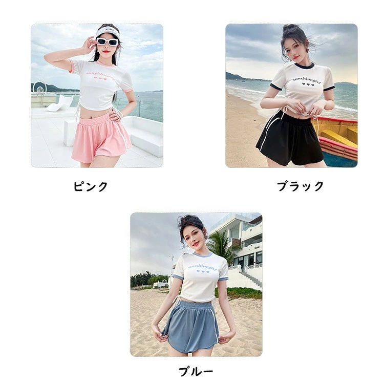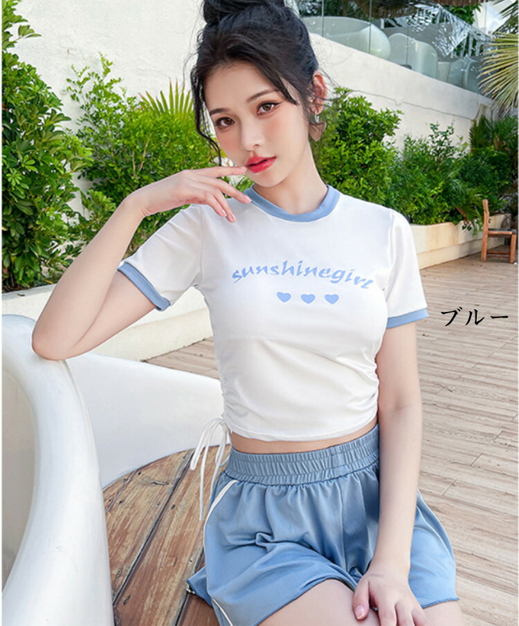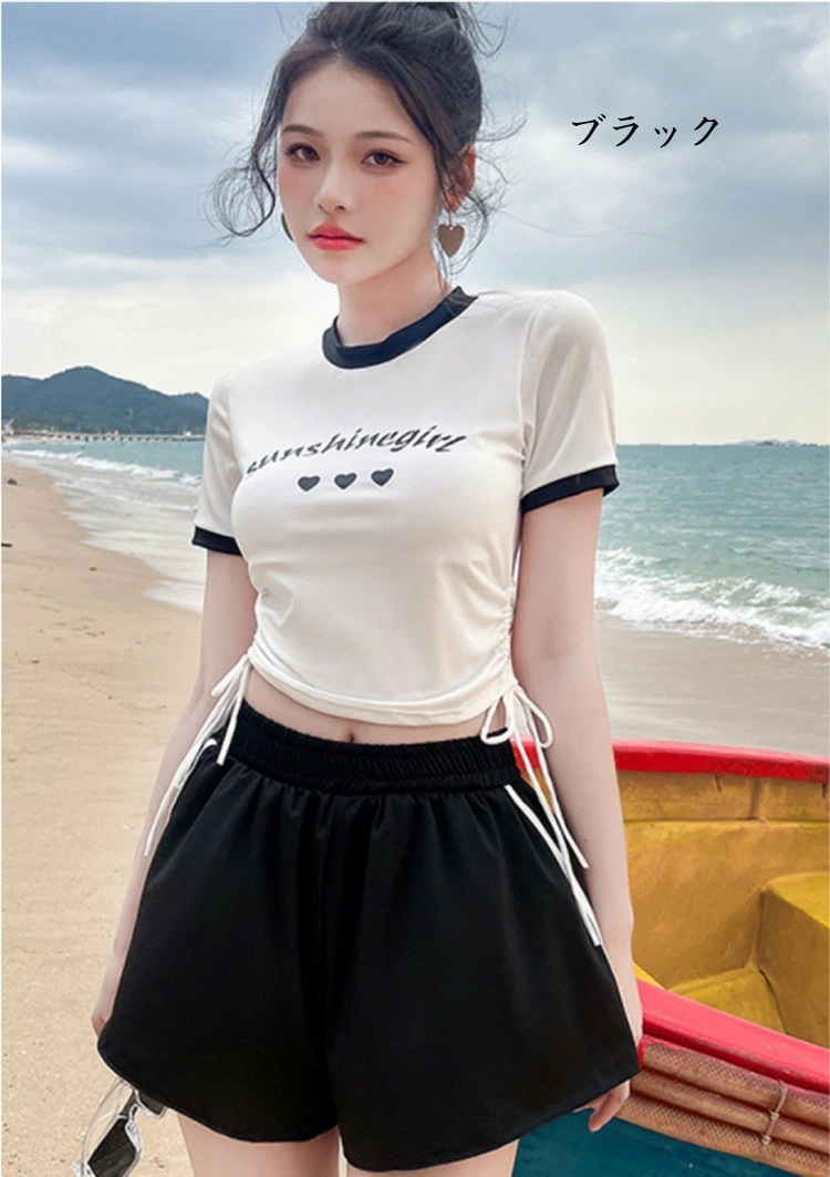 2点セット 水着 露出控え 温泉 レディース 体型カバー ビキニ 半袖 夏 セパレート 黒 青 胸パッド付き ショートパンツ 小胸 水陸両用 おしゃれ キレイ かわいい セクシー ビキニ水着 ファショ
