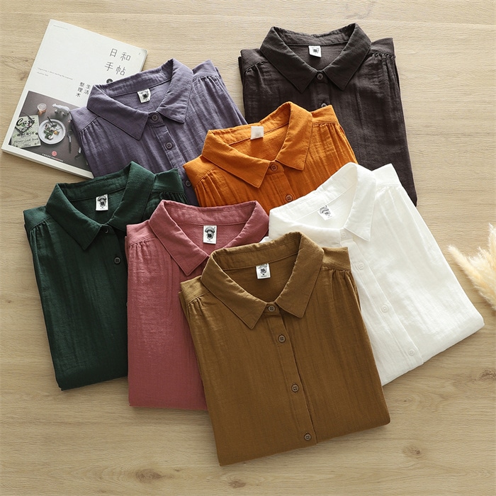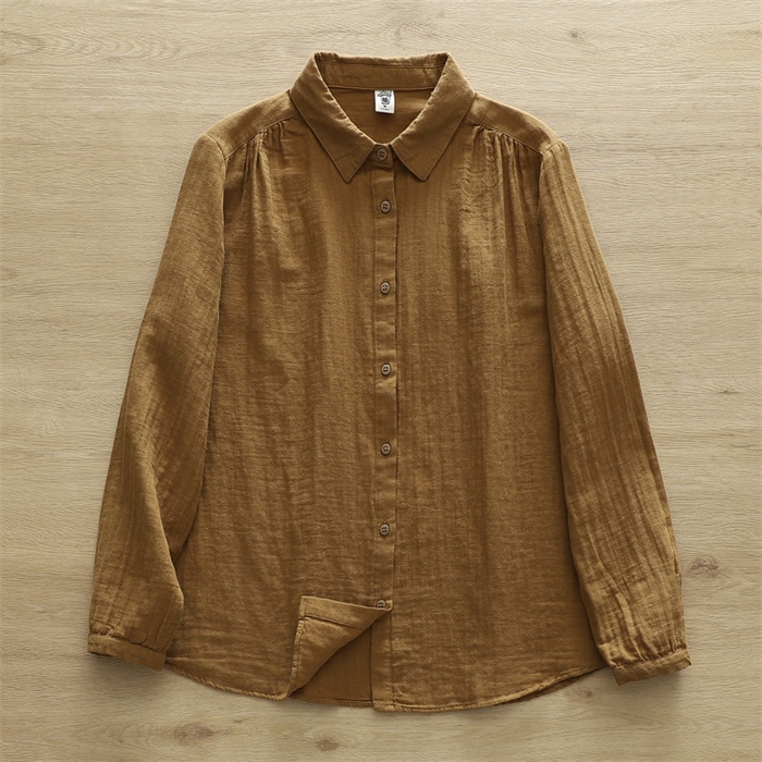 オフェス シャツ レディース 長袖 ガーゼ ブラウス おしゃれ オフィス 面接 トップス ダブルガーゼ コットン 綿100% 丸襟 前開き カジュアル 無地 体型カバー オフェス シンプル 着回し 通勤 OL