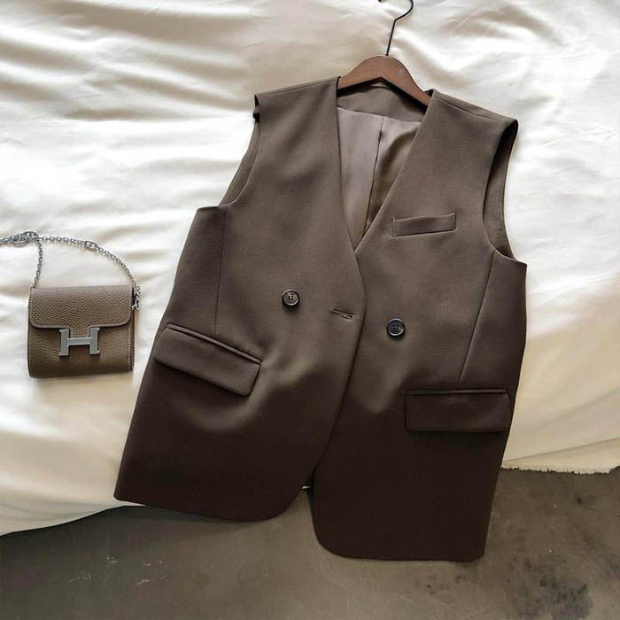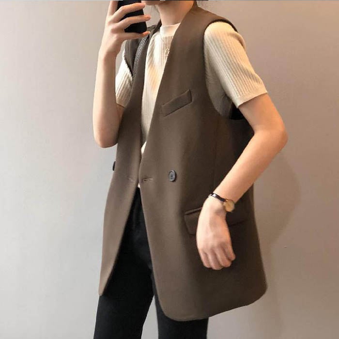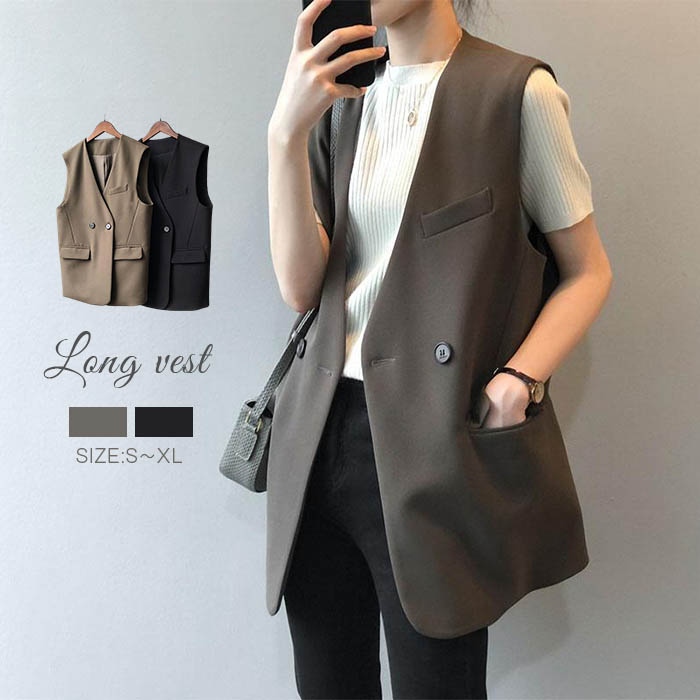 ベスト レディース ノースリーブ ロングジレ ロング ライトアウター ロングベスト ロングジレ ジャケット ノースリーブ 羽織り きれいめ 裏地 コーヒー色 黒 春 秋 きれいめ カジュアル 着痩せ
