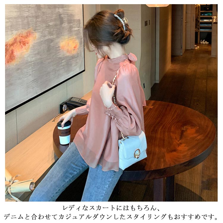 シフォンブラウス シアーブラウス ボリューム袖