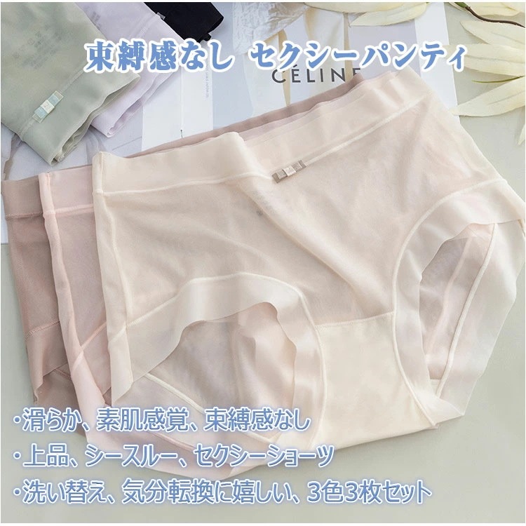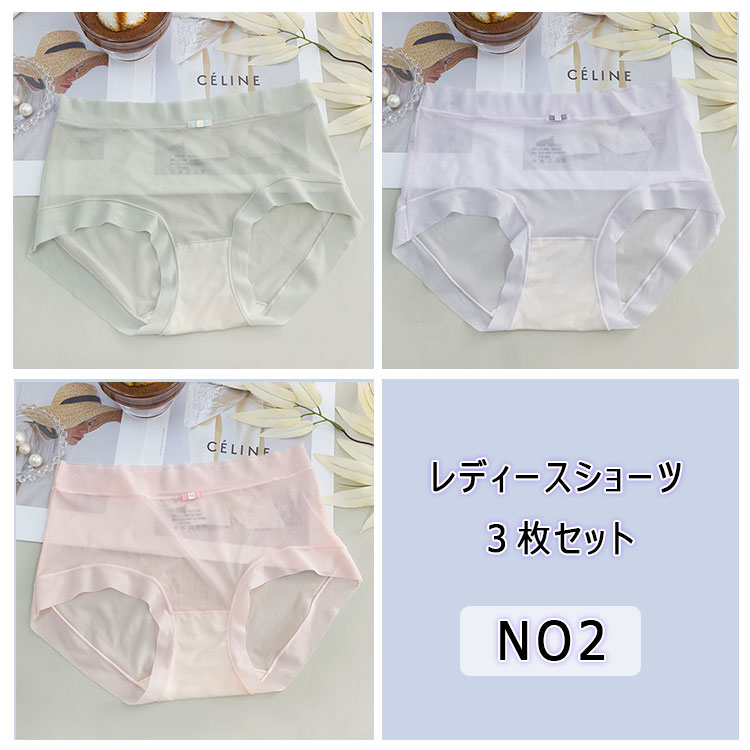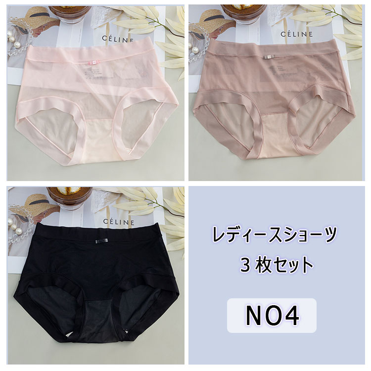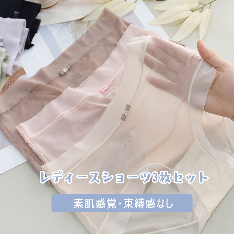 ショーツ 3枚セット レディース 薄い シースルー セクシーパンティー アイスシルク 清涼感 滑らか 柔軟 高弾力 快適フィット アウターに響きにくい スタンダード ノーマルレッグショーツ フリーサイ