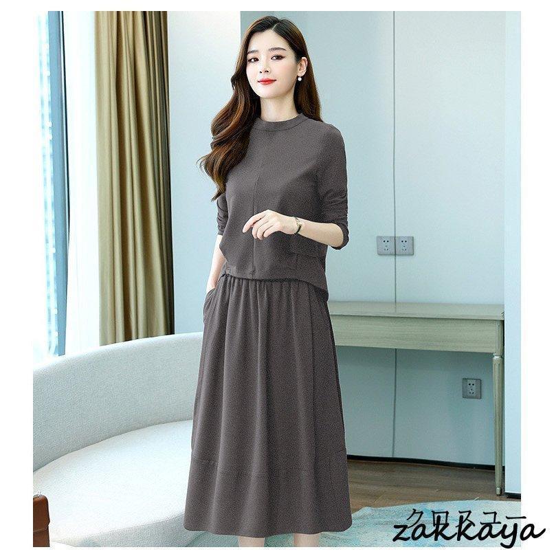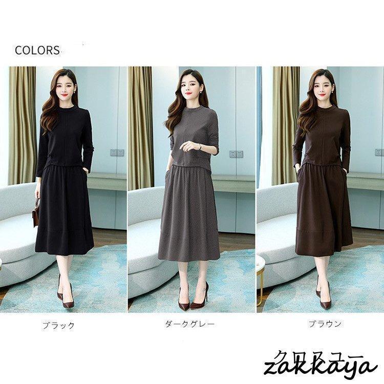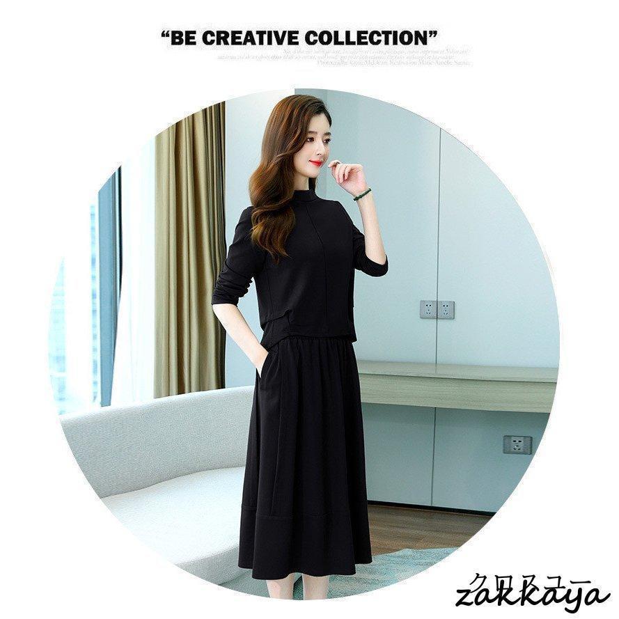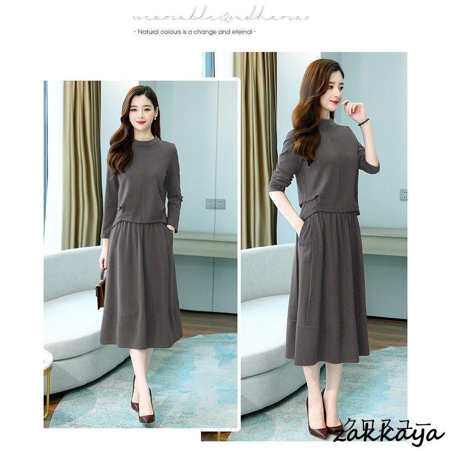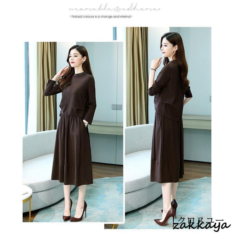 ワンピースセットアップ レディース 40代 膝丈 秋 春 長袖 50代 きれいめ 無地 通勤 オシャレ デート 長袖ロング マキシ丈ワンピ