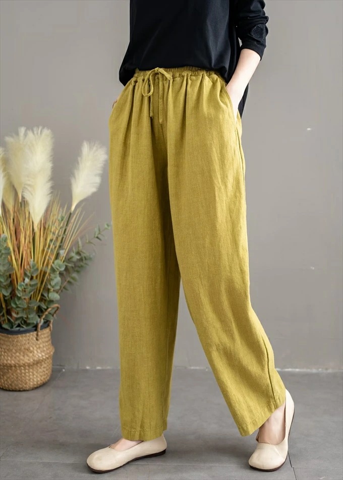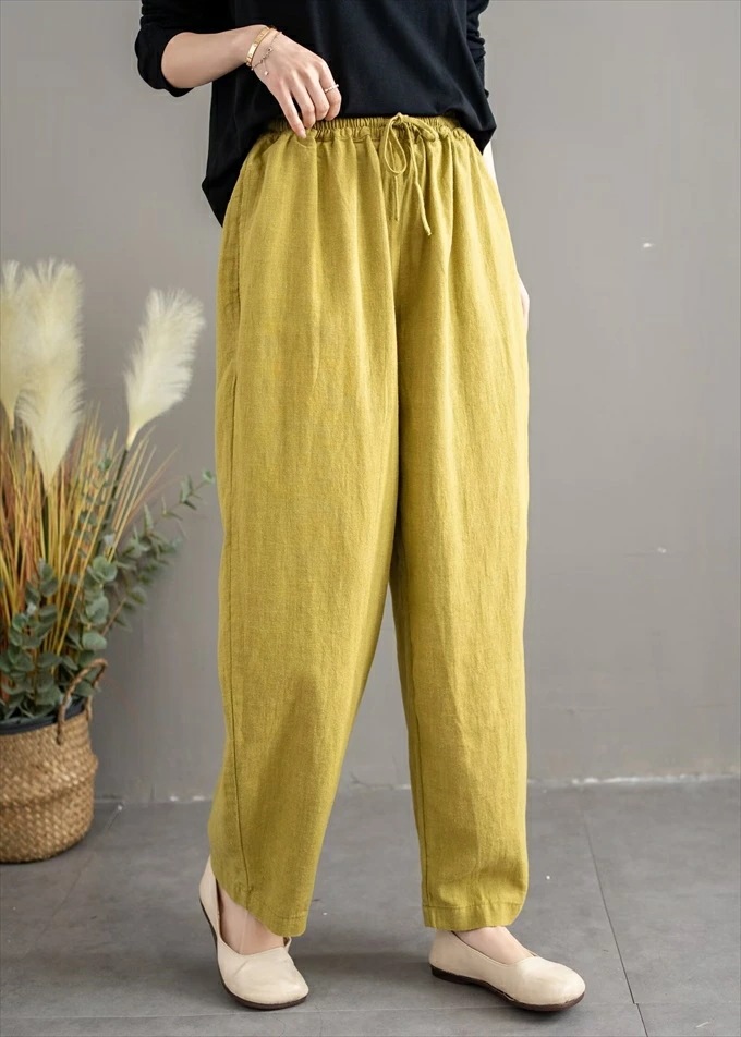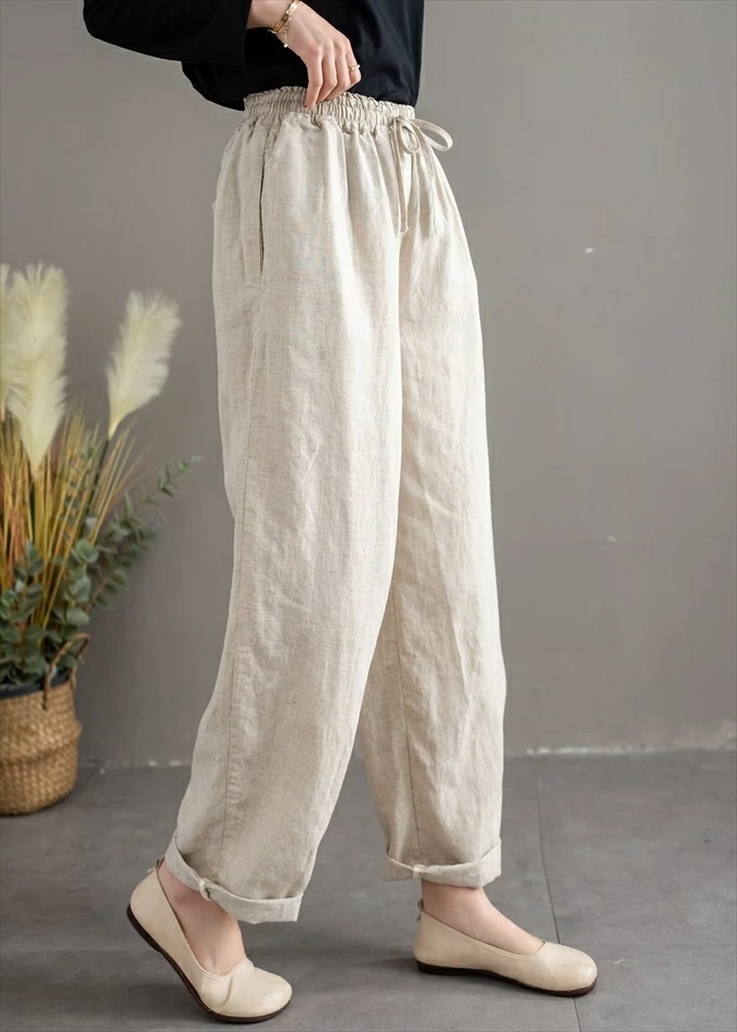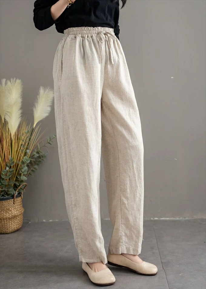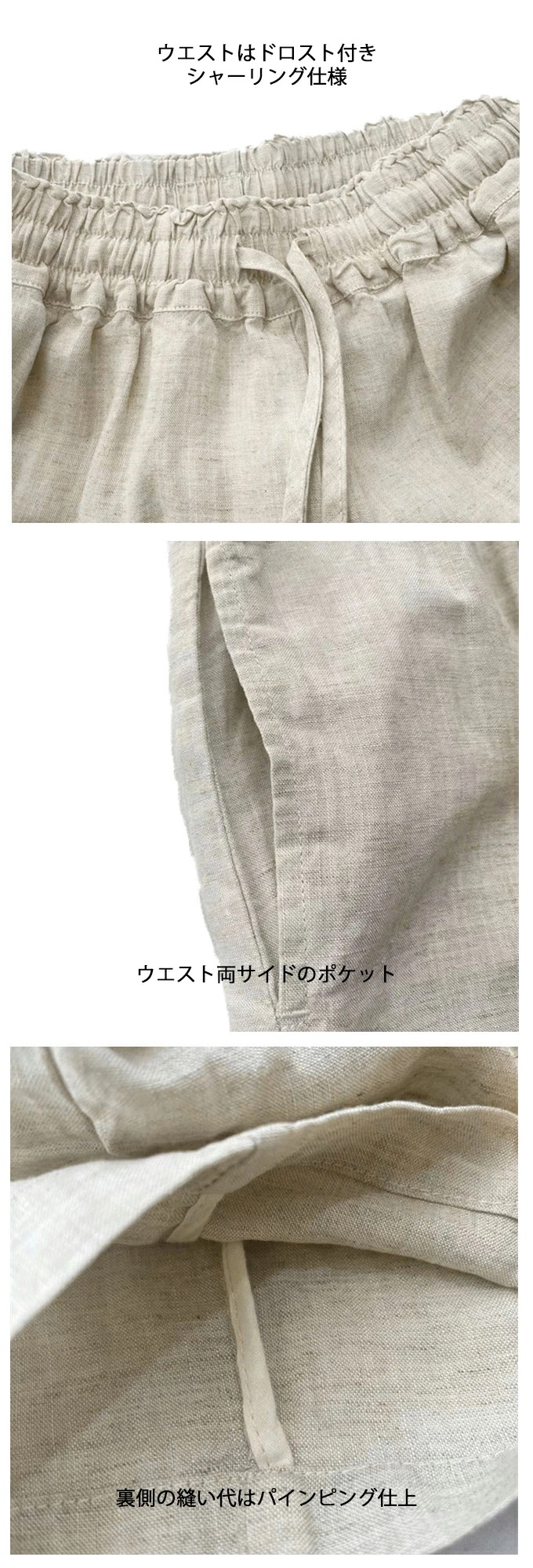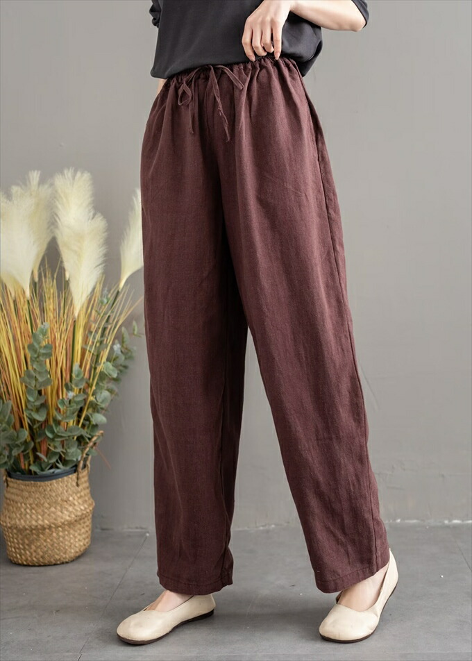リネン100% リネンパンツ 麻パンツ レディース 春 夏 秋 涼感 テーパードパンツ 裏パイピング 春パンツ 秋パンツ 10分丈 シャリ感 ウエストゴム 4ポケット 麻色 エクリュ生成