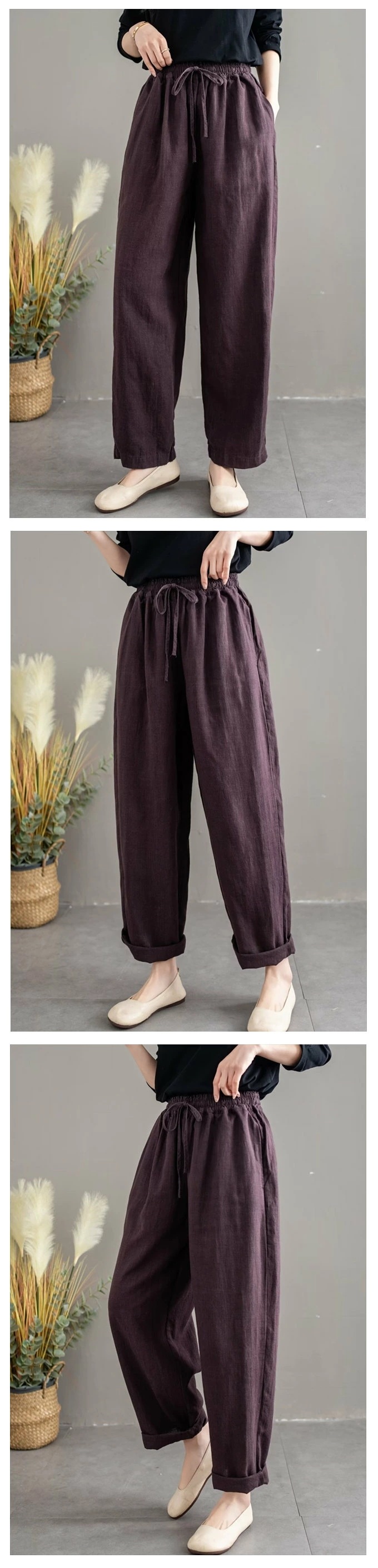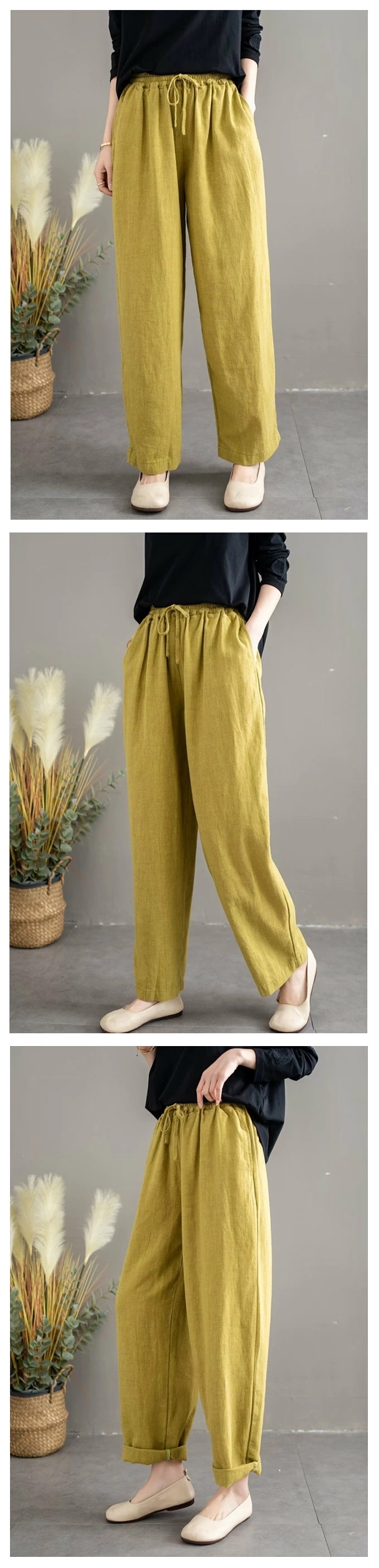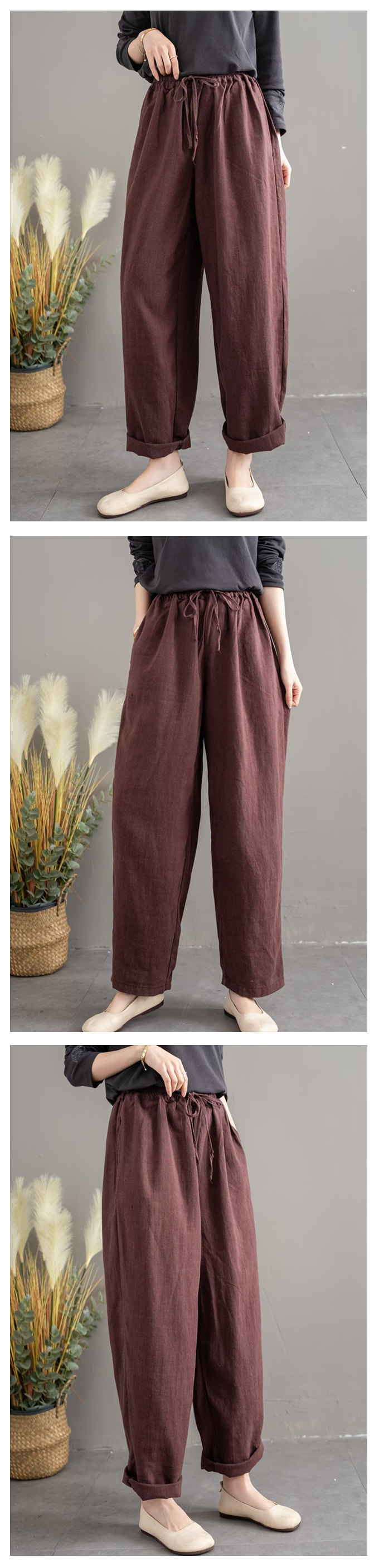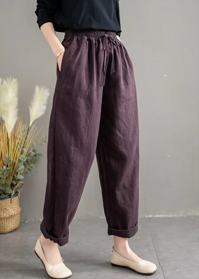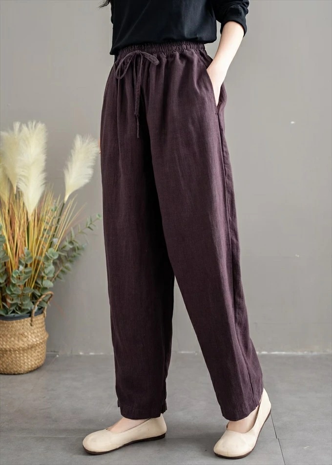 リネン100% リネンパンツ 麻パンツ レディース 春 夏 秋 涼感 テーパードパンツ 裏パイピング 春パンツ 秋パンツ 10分丈 シャリ感 ウエストゴム 4ポケット 麻色 エクリュ生成