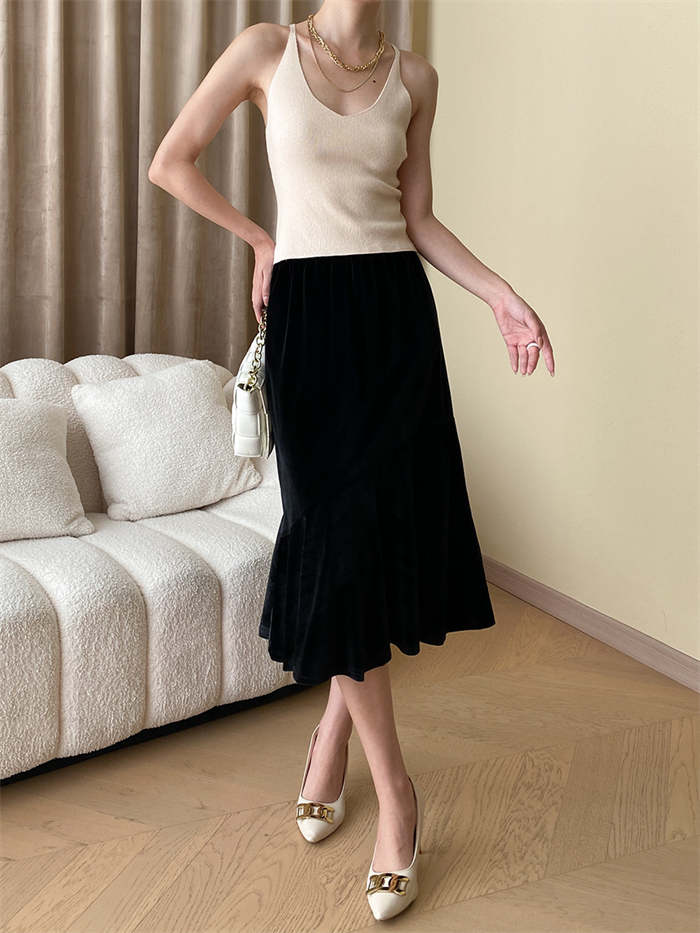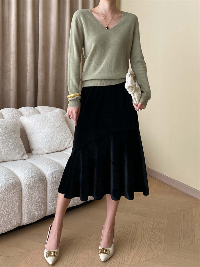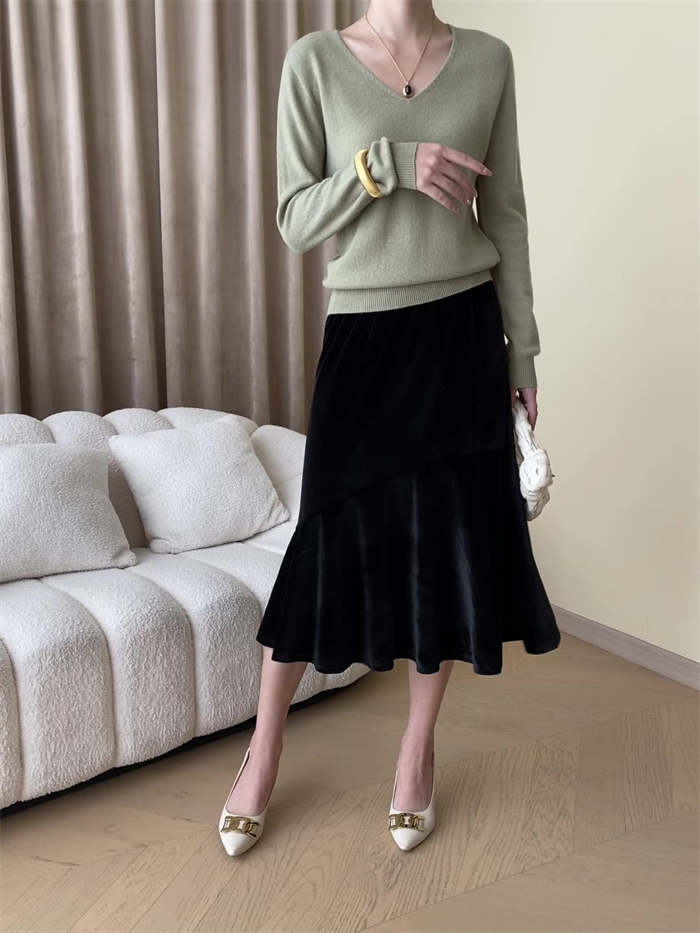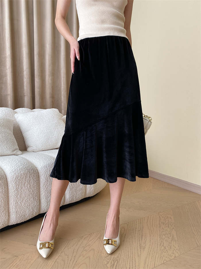 スカート レディース マーメイド ベロアスカート ベルベット 秋 冬 ボトムス 無地 ミモレ丈 ベロア ウエストゴム Aライン 着痩せ 光沢感 体型カバー おしゃれ ゆったり カジュアル かわいい エ