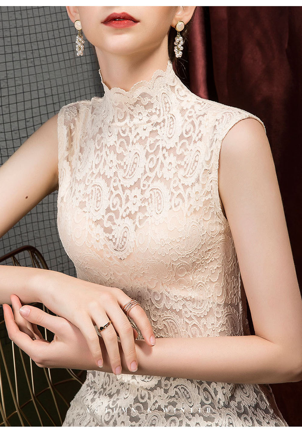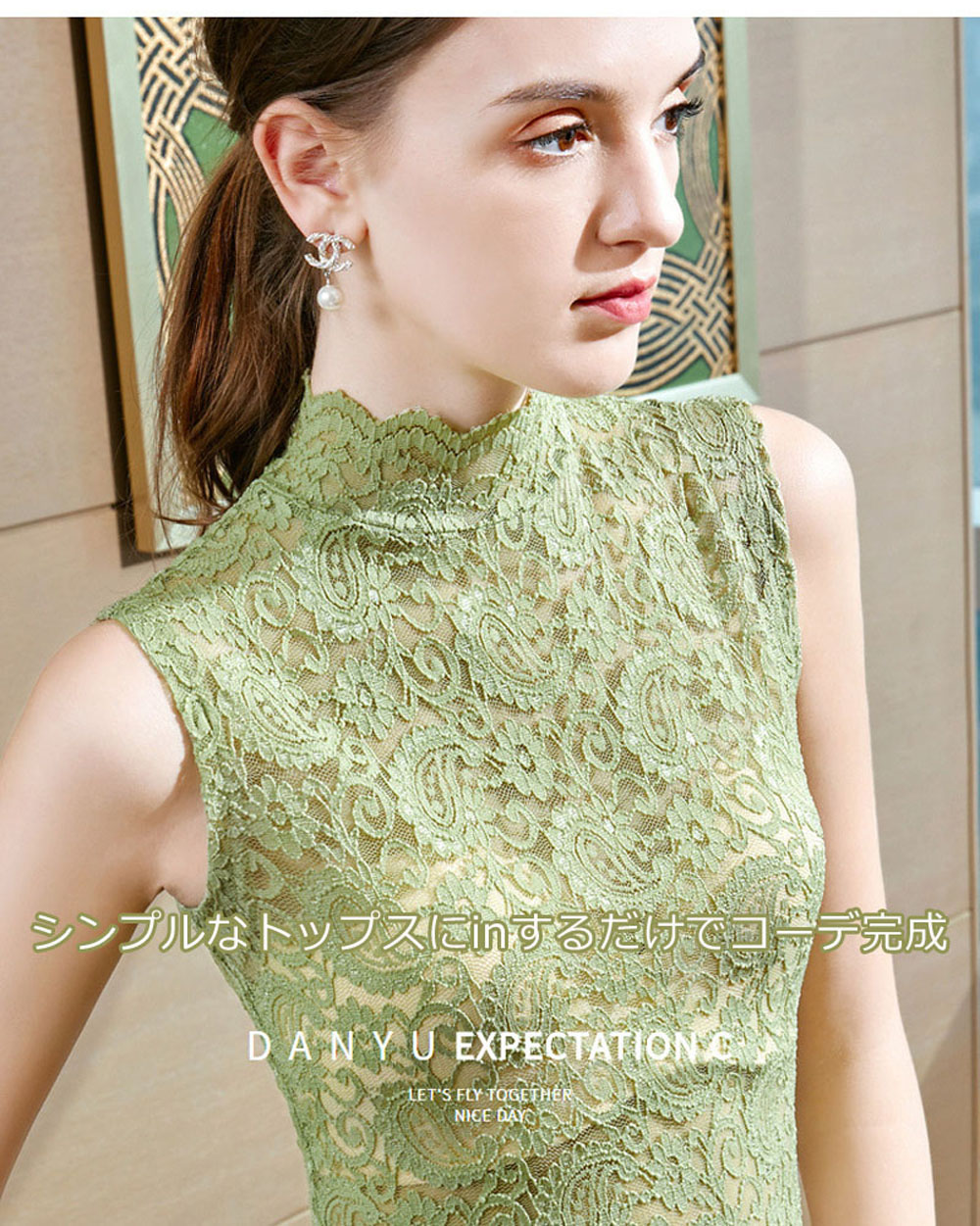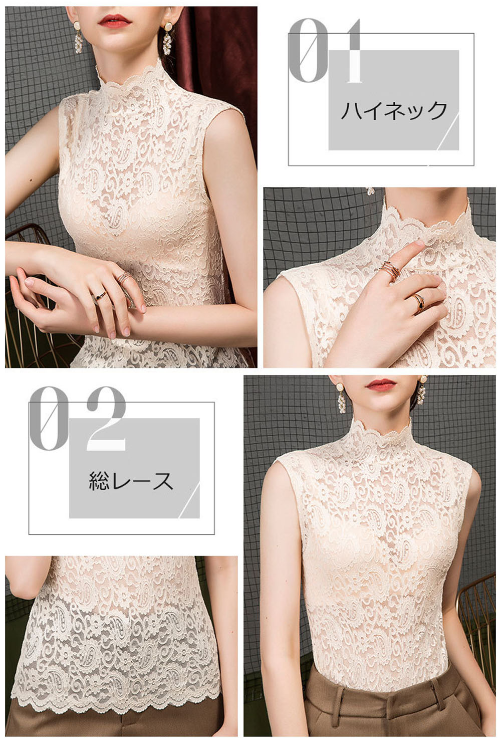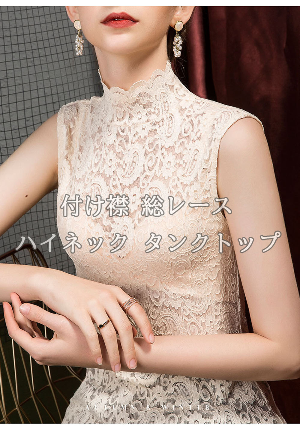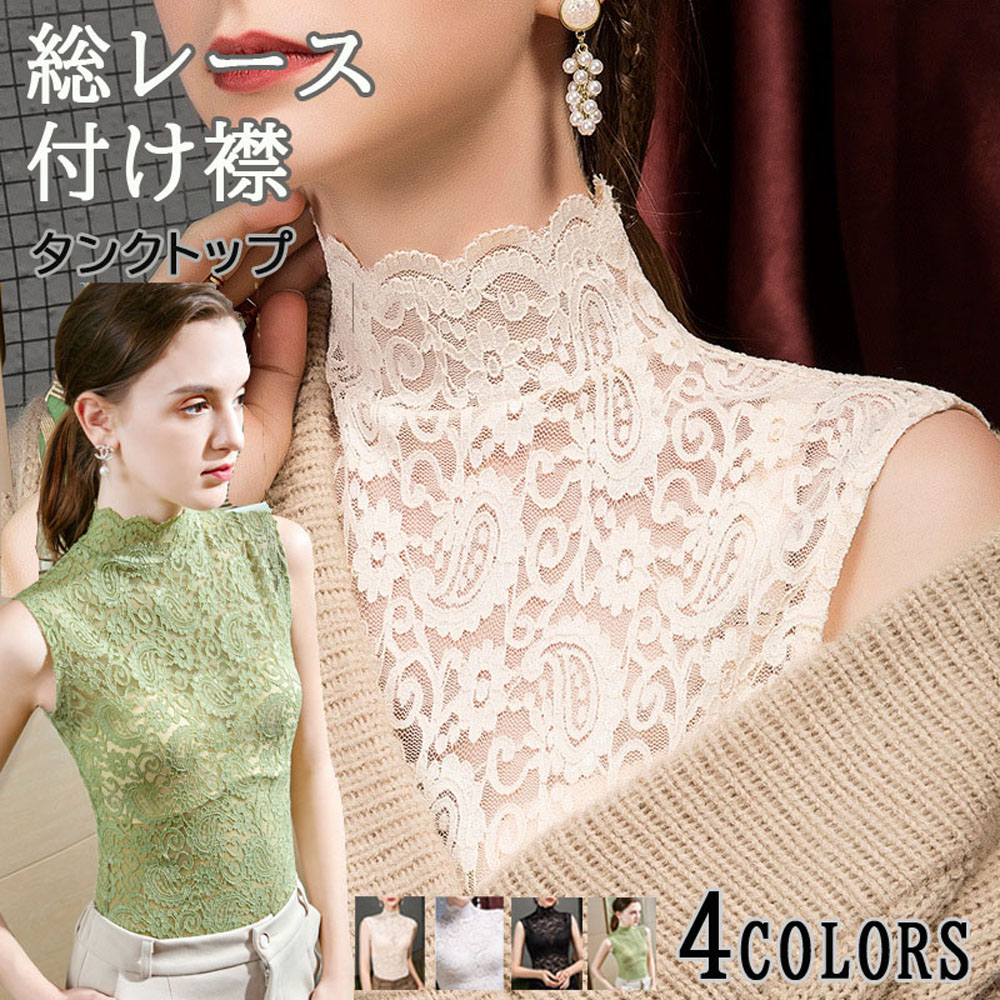 つけ襟 付け襟 レディース フェイク襟 総レース レイヤード風 タンクトップ トップス ハイネック タンクトップ 彫り 透けノースリーブ 重ね着 着回し 体系カバー インナー Tシャツ 薄手 レディー
