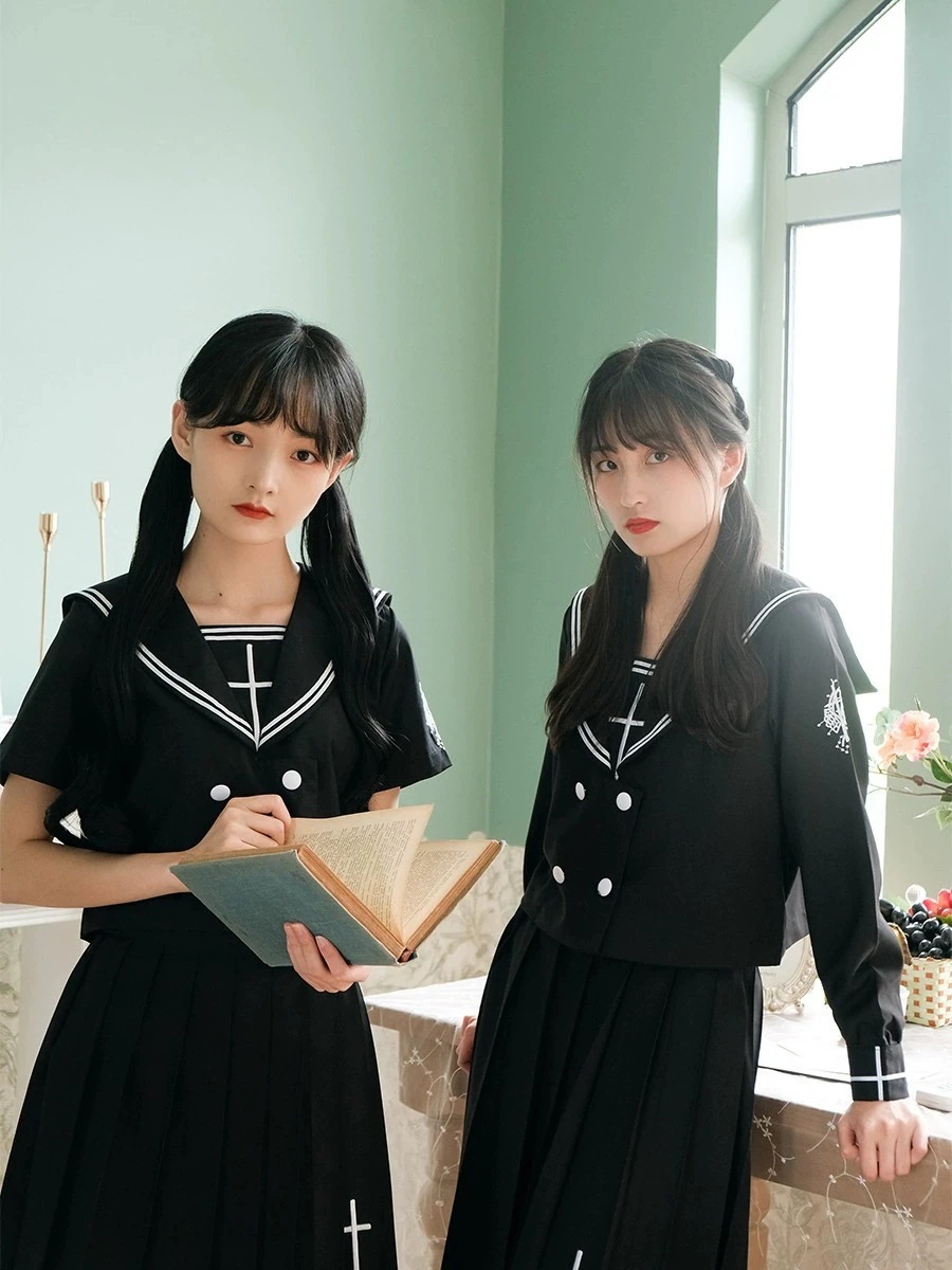 クロスローズjk制服学生服セーラー服甘い学院風スーツ学生学校クラス服舞台演出服 シャツワンピ