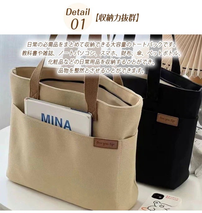 トートバッグ キャンバス ショルダーバッグ レディース メンズ 大容量 無地 キャンパストート 帆布バッグ 通勤 通学 トートバッグ