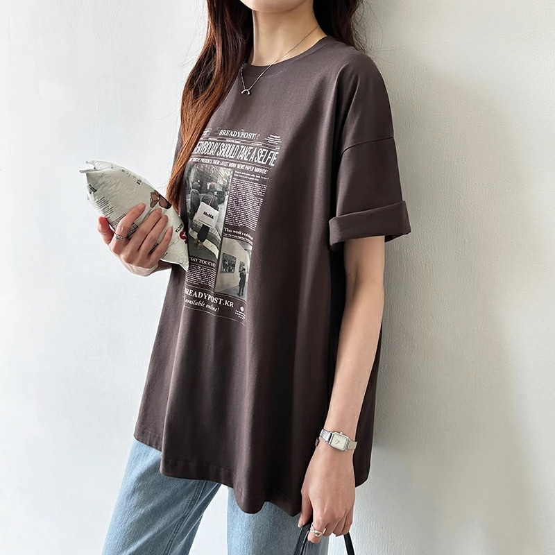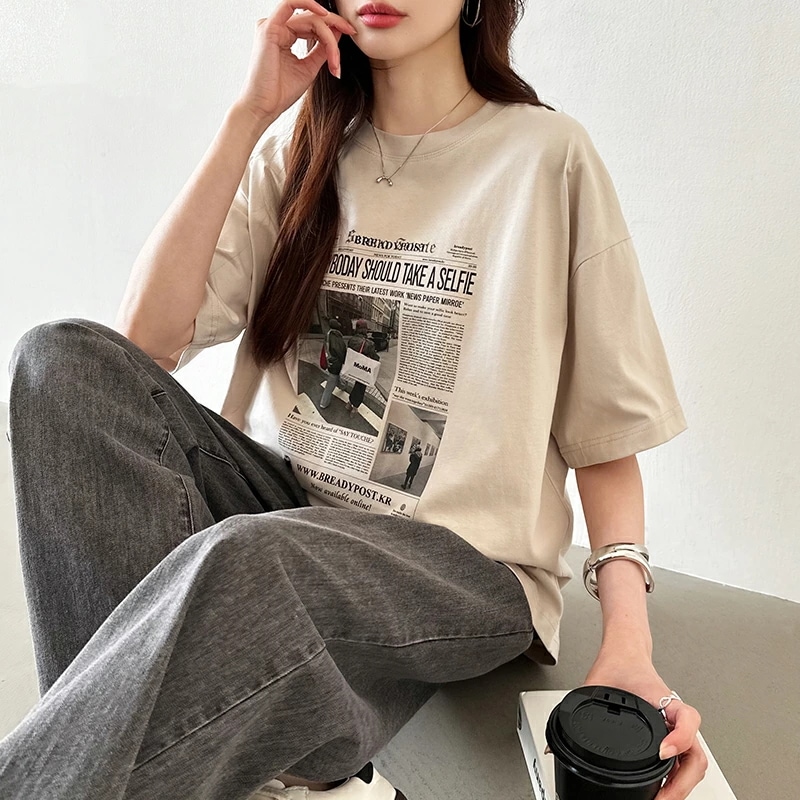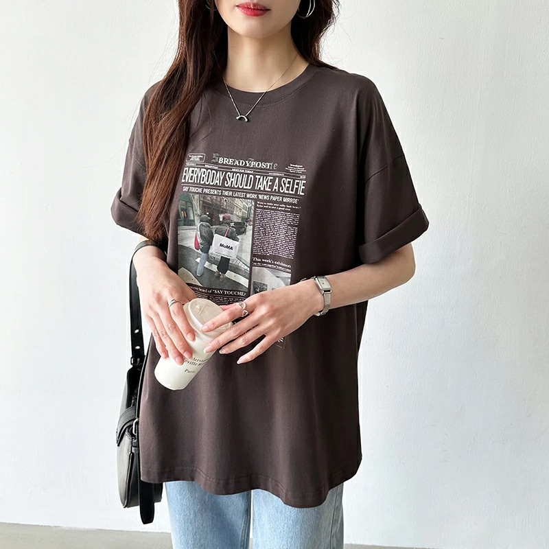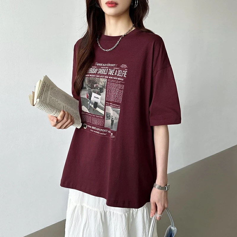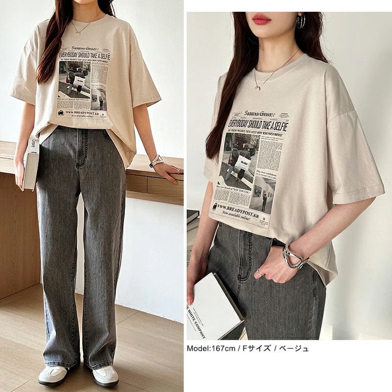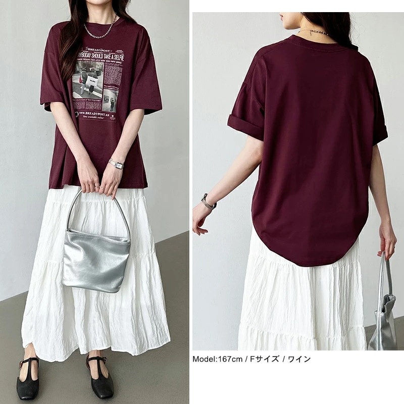 フォトTシャツ ロゴtシャツ 綿100% Tシャツ 半袖 ロゴ トップス レディース カットソー ゆったり クルーネック 五分袖 綿 半袖tシャツ オーバーサイズ ロング