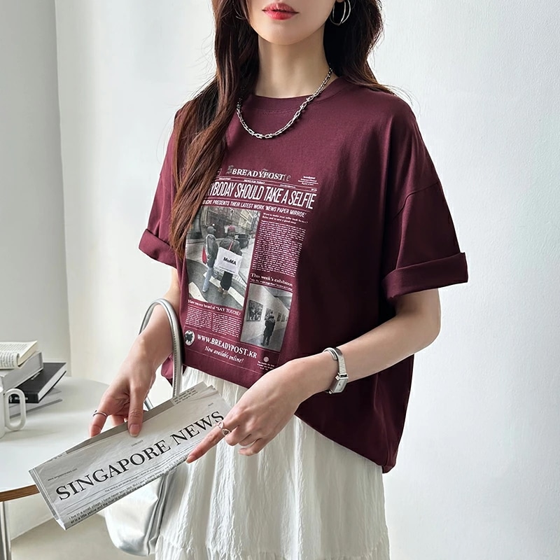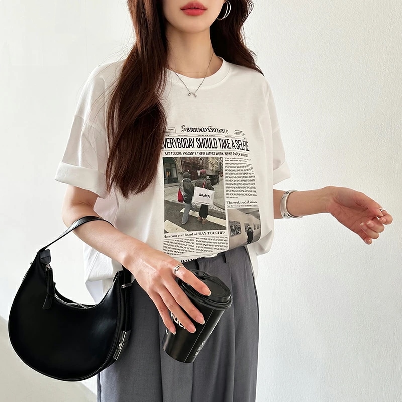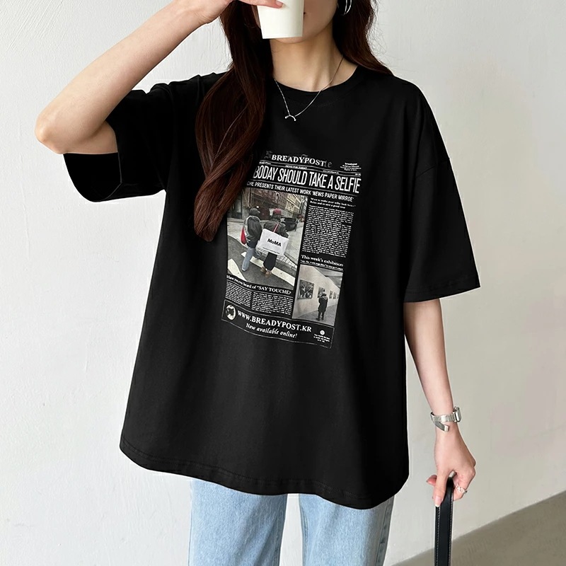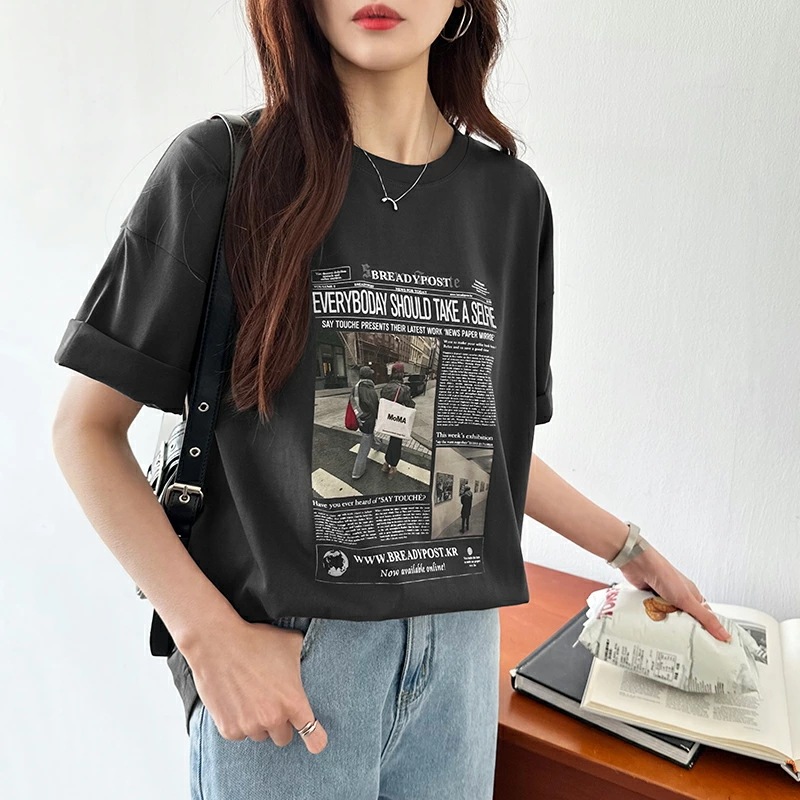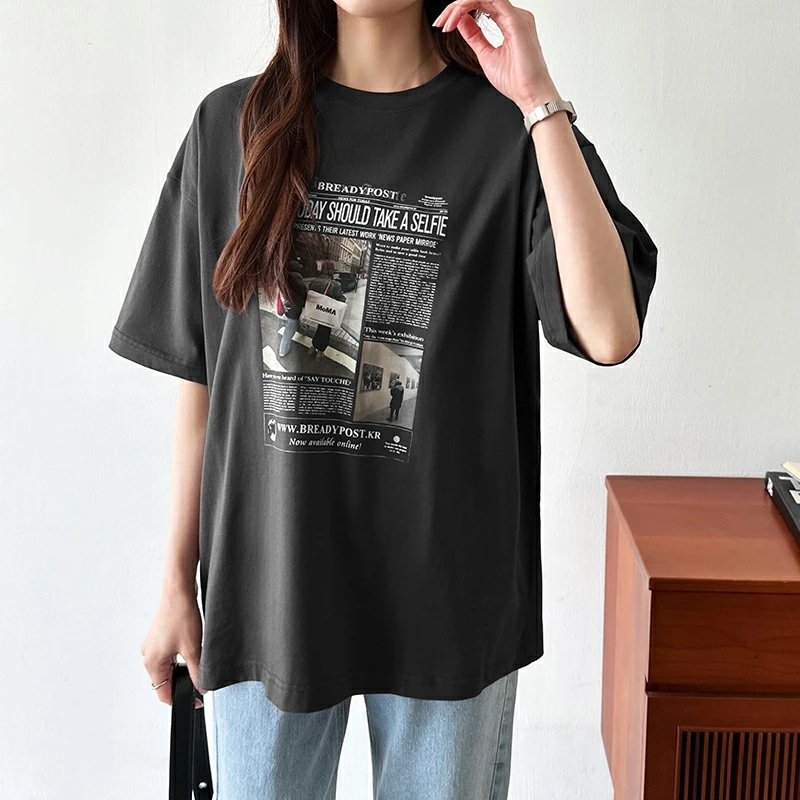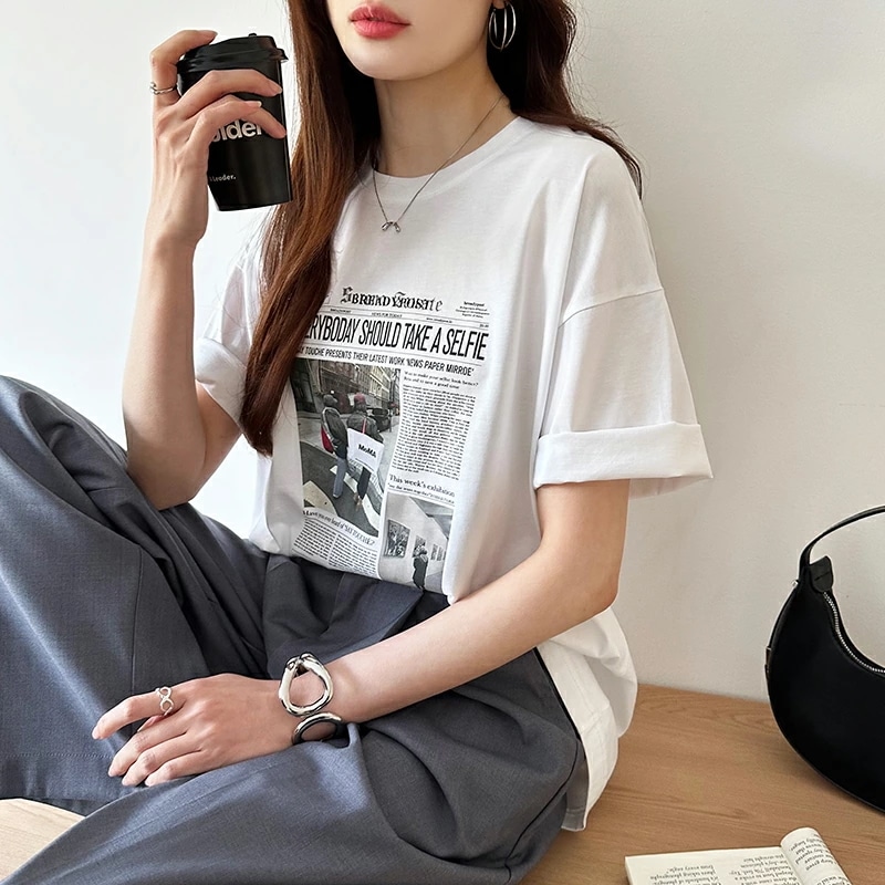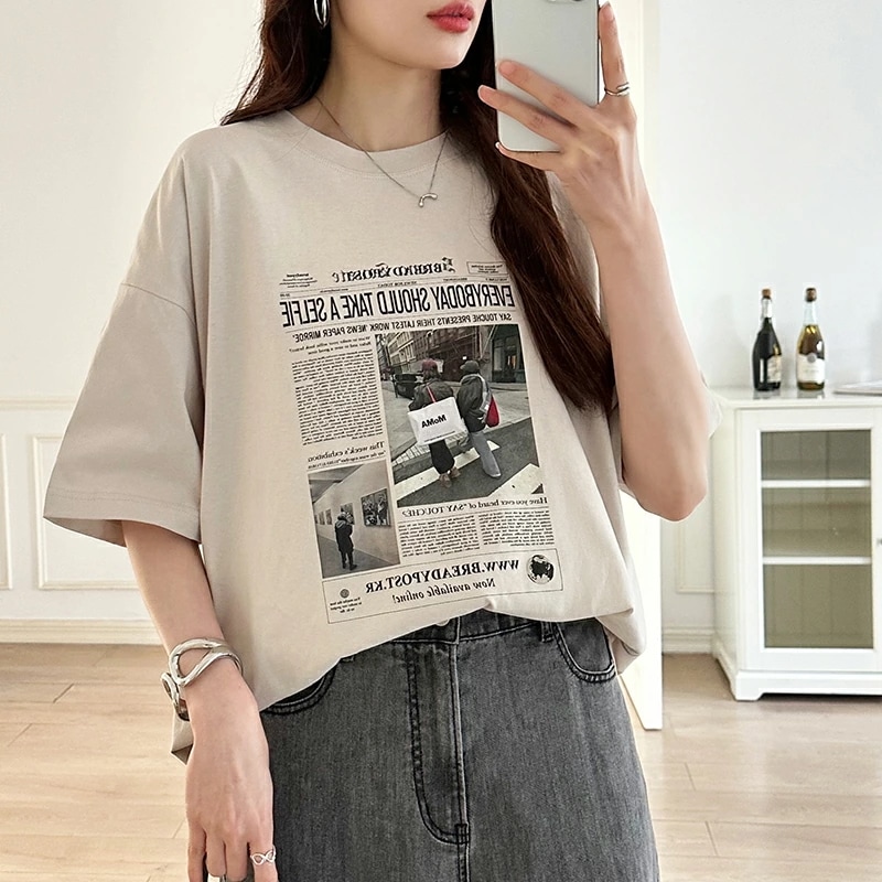 フォトTシャツ ロゴtシャツ 綿100% Tシャツ 半袖 ロゴ トップス レディース カットソー ゆったり クルーネック 五分袖 綿 半袖tシャツ オーバーサイズ ロング