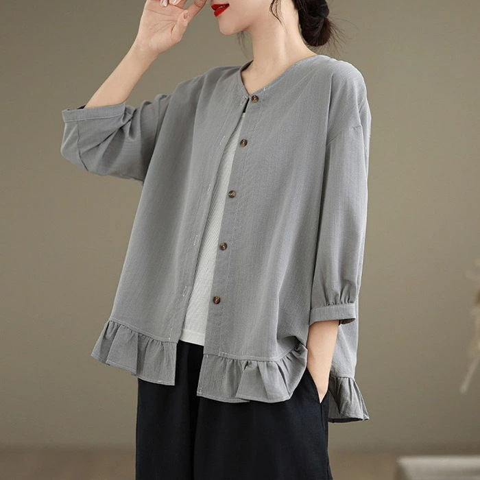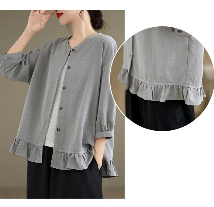 カーディガン レディース トップス クルーネック 七分袖 ブラウス ショート丈 アウター カジュアル シンプル 大人 可愛い ゆったり 大きいサイズ 体型カバー 細見え ベーシック 無地 着回し 冷房