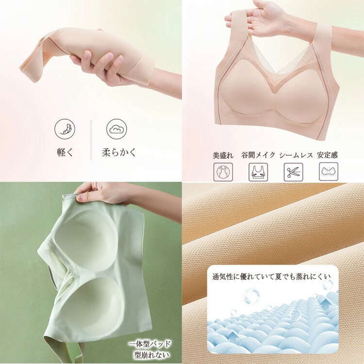 2点で300 円オフ シームレス ブラ レディース 谷間メイク ノンワイヤー 一体型パッド 脇高設計 単品 ブラジャー リラックス インナー 通気性 カップ付き パッド付き 美しく盛れる 楽々