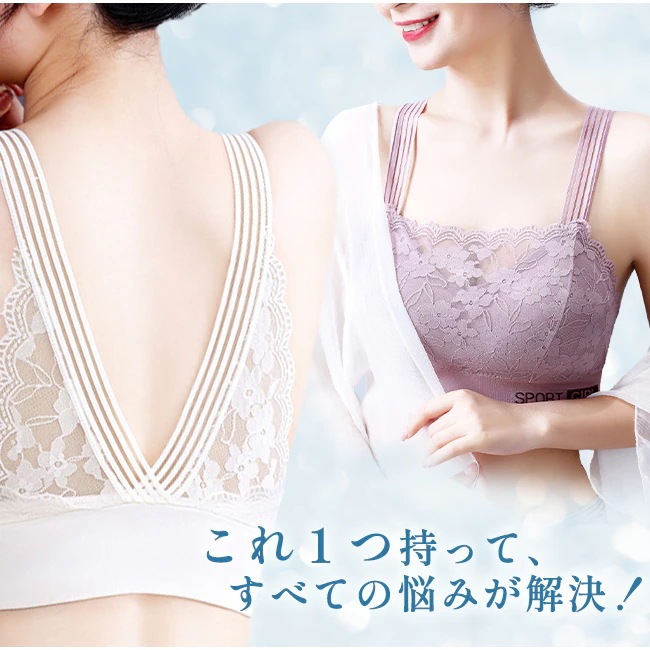 24時間使える ナイトブラ 背中開き ブラジャー 美胸 レース 後ろVレース 涼しい ノンワイヤーブラ レディース インナー ひんやり カップ付 肌着 取り外し可能 下着