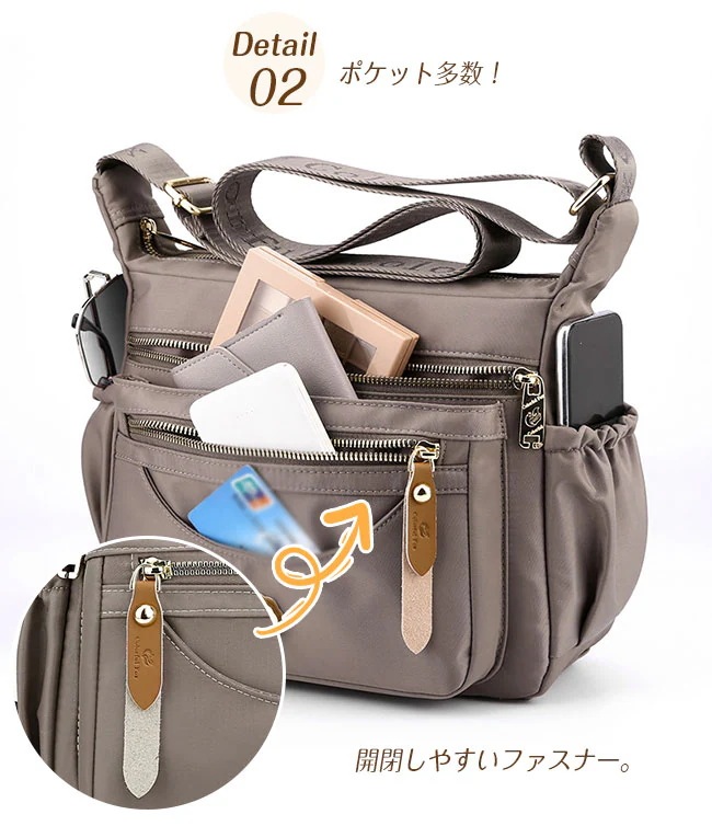 ショルダーバッグ レディース 斜め掛け 肩掛けバッグ ナイロンバッグ 撥水 小さめ 大容量 軽量 人気 通勤バッグ 大人 かわいい 整理整頓 おしゃれ ポケット カバン 鞄 通勤 通学 マザー