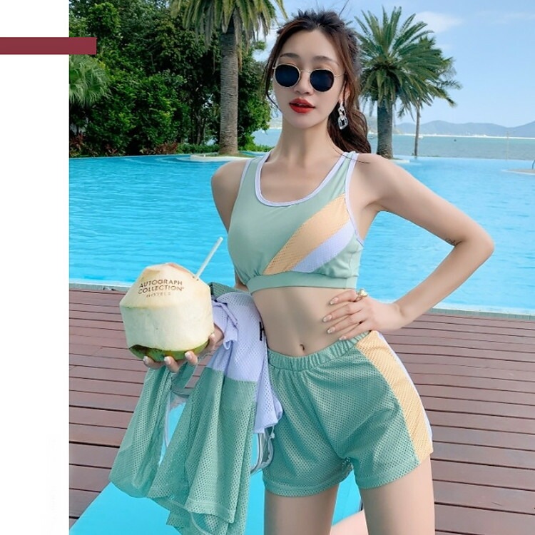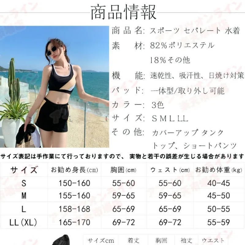 水着 レディース 中学生 韓国 水着 高校生 スポーツ 女の子 体型カバー 露出控え セット スポーティー 3点セット セパレート タンキニ ショートパンツ ファション 韓国風 日焼け防止 UVパーカ